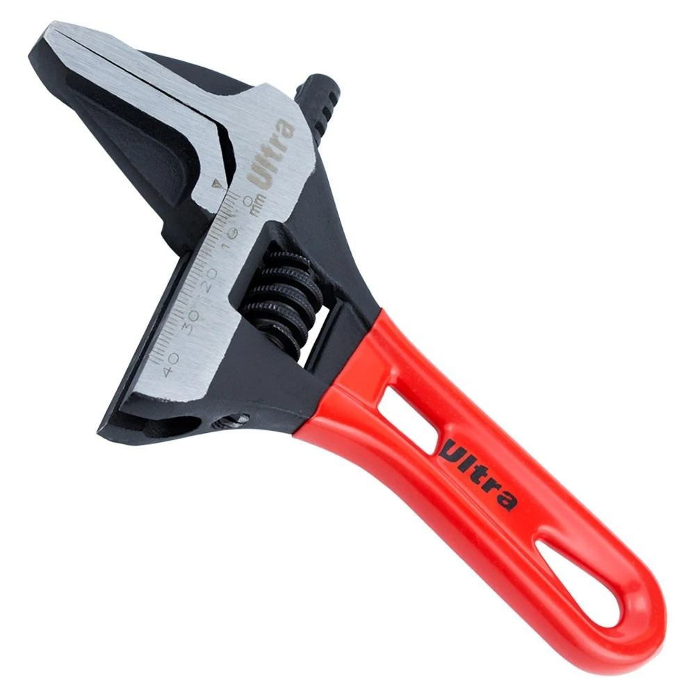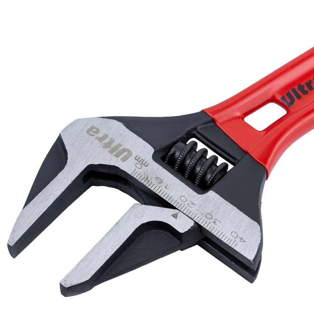 Максимальна відстань, на яку можна розвести губки інструменту, на 50% більша, ніж у стандартного ключа. Для більш зручного використання на поверхню накидної частини ключа нанесена шкала з розподілом по 1 мм. Це дозволяє виставити точний розмір при роботі з тим чи іншим видом кріплення. Розвідний ключ виконаний з високоякісної хромованадієвої сталі.