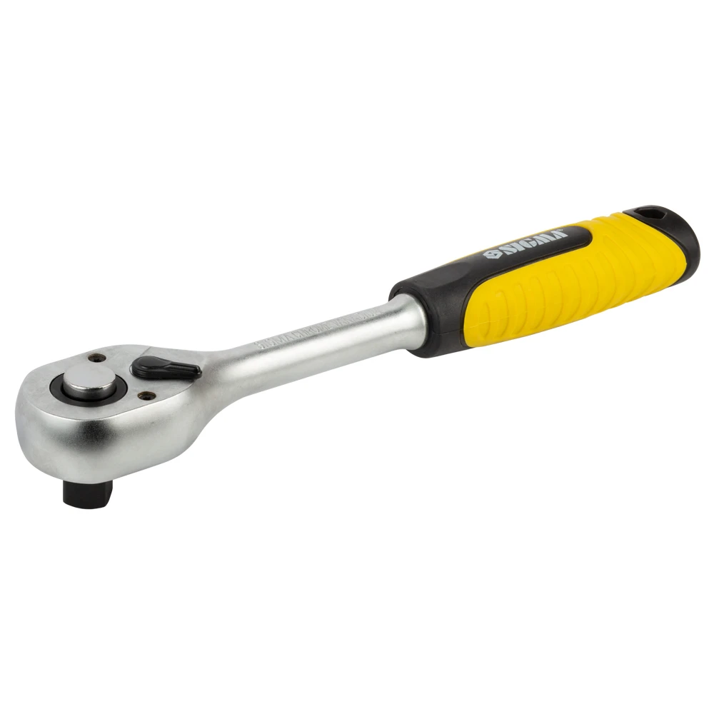 Ключ-тріскачка 1/2'' 250мм 72T CrV Sigma (6050011) з храповим механізмом на 72 зуба. Виконаний з хром-ванадієвої сталі. Використовується для роботи з різьбовими з'єднаннями.