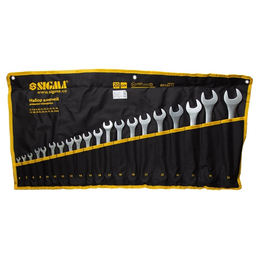 Ключі рожково-накидні 20шт 6-32мм CrV satine (тк чохол) SIGMA (6010171) є необхідним інструментом при складанні і розбиранні болтових з'єднань, що мають шестигранний профіль.