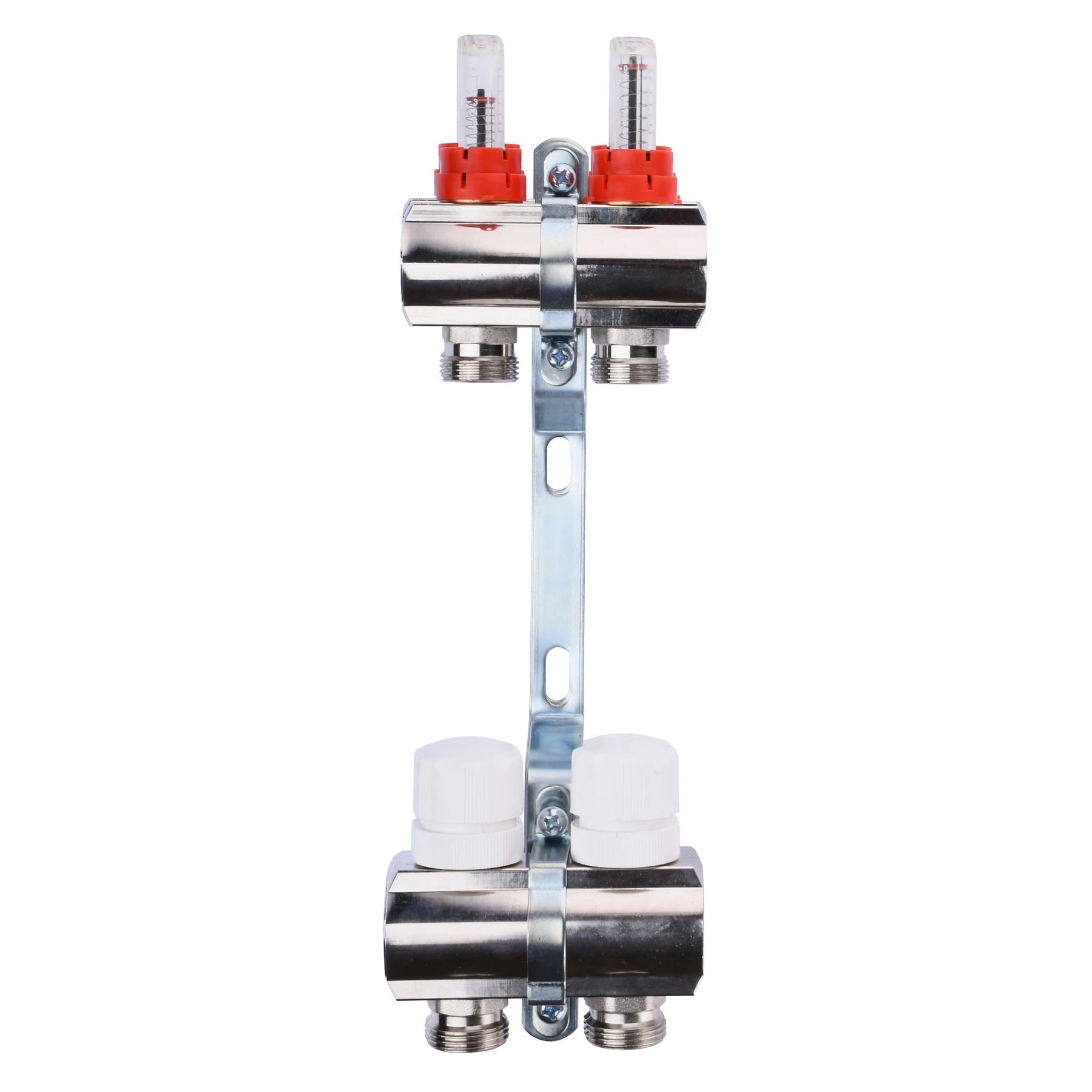 Колектор з вимірювачем витрат, регуляторами та кріпленням ECO 001A 1″x2