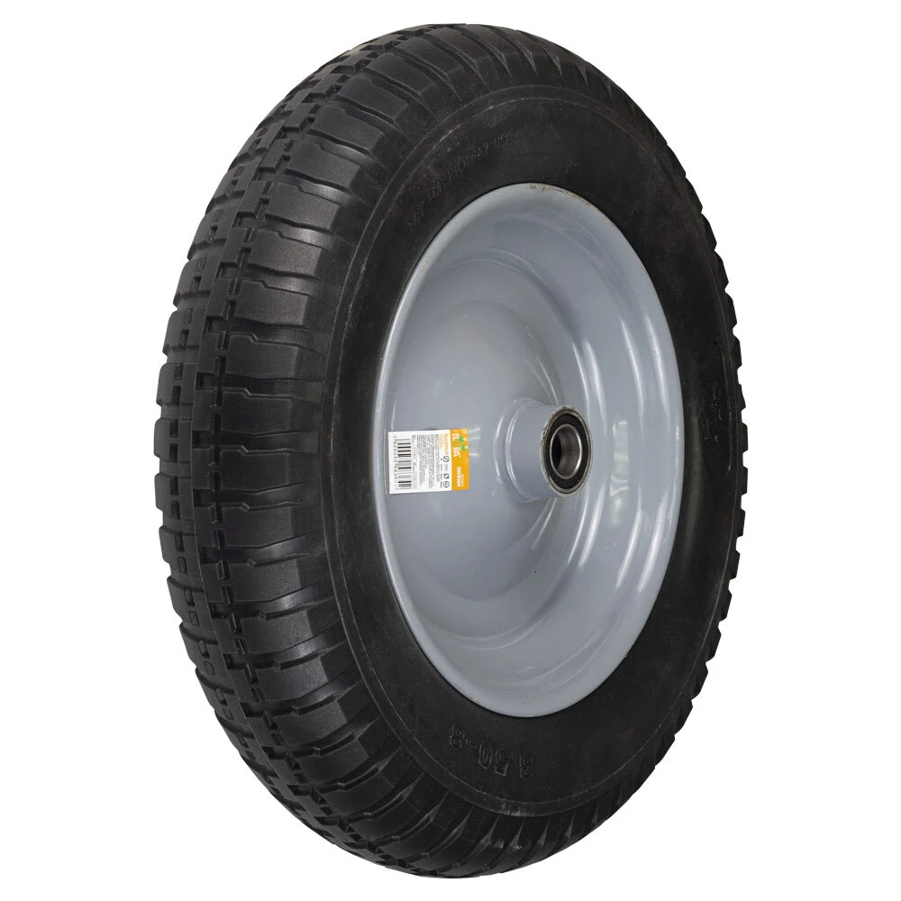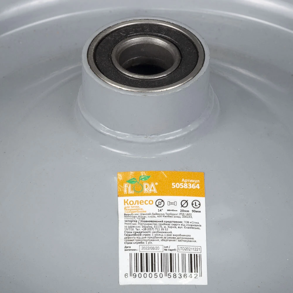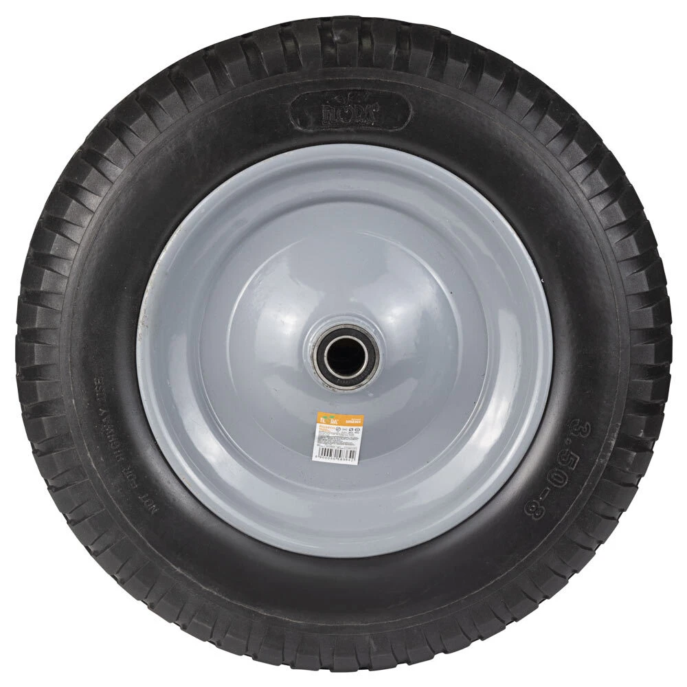 Колесо для тачки безкамерне поліуретанове 14" (3.50-8) 370×80мм вісь Ø16мм довжина 90мм FLORA (5058364)