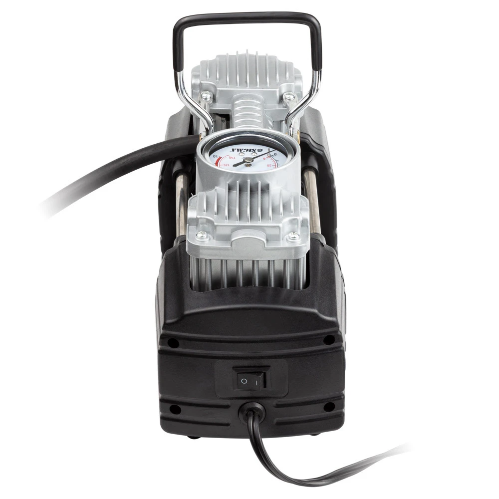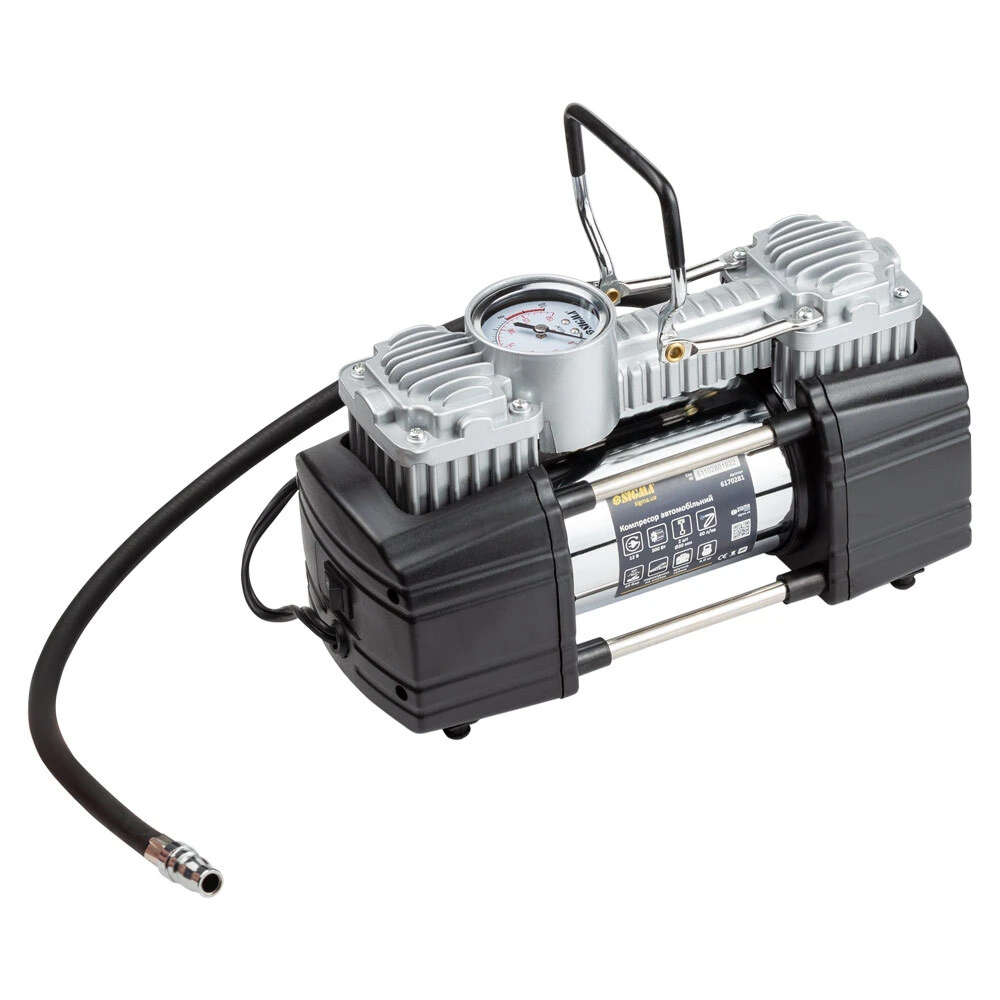 Компресор автомобільний 12В 300Вт 25А 60л/хв 10бар сумка перехідник на клеми SIGMA (6170281) використовується для підкачки колес автомобіля. За допомогою перехідника від прикурювача на клеми і насадок, які поставляються в комплекті, ви можете підключити компресор безпосередньо до акумулятора і використовувати у побуті для накачування спортивного інвентарю.