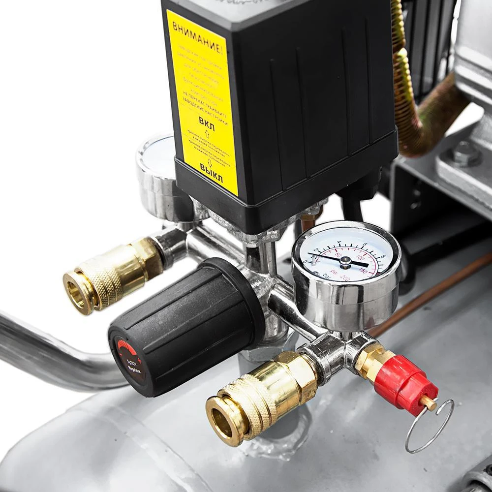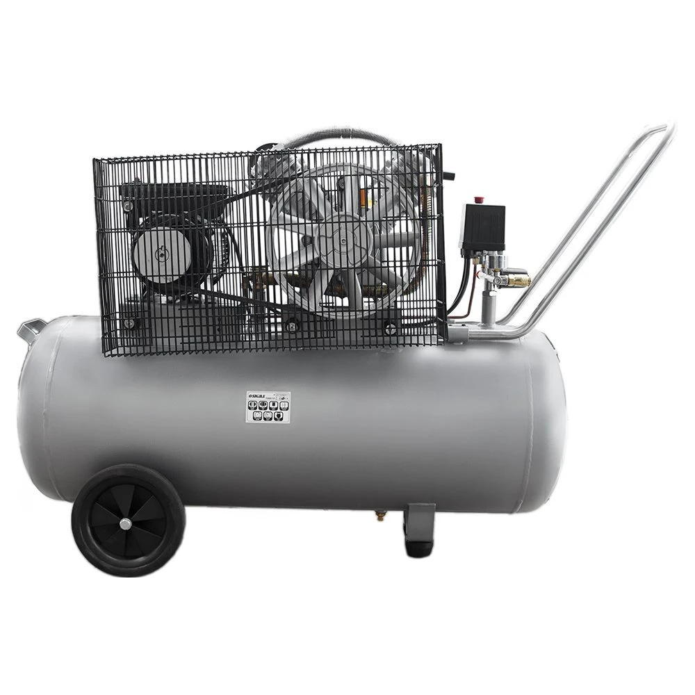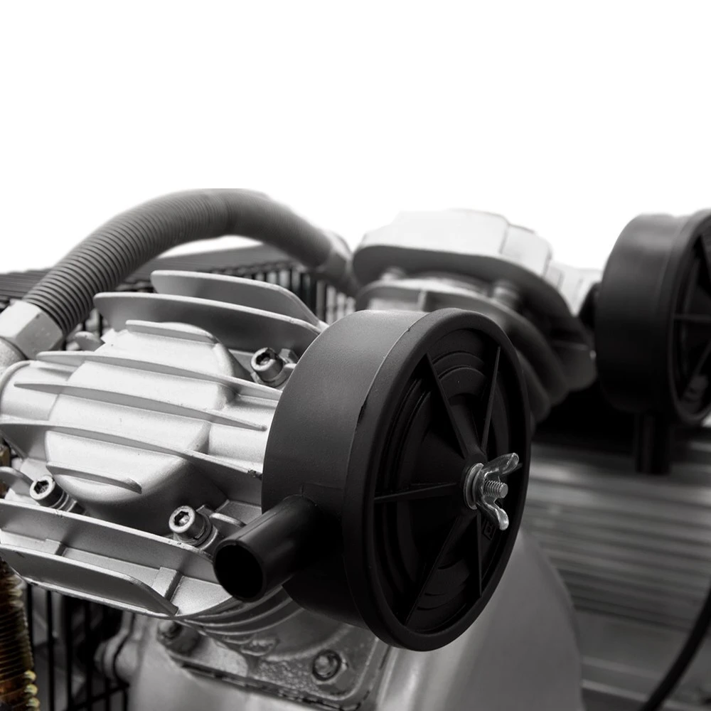 Компресор двоциліндровий ремінний 2.5кВт 396л/хв 10бар 100л (2 крана) SIGMA (7044151) призначений для нагнітання стисненого повітря з подальшою його подачею під тиском в різні типи пневмоінструменту і пневмообладнання. Ремінний привід компресора закритий металевим кожухом, який запобігає від попадання сторонніх предметів. Опорна ніжка забезпечує стійке положення на поверхні, а гумова подушечка знижує рівень вібрації.