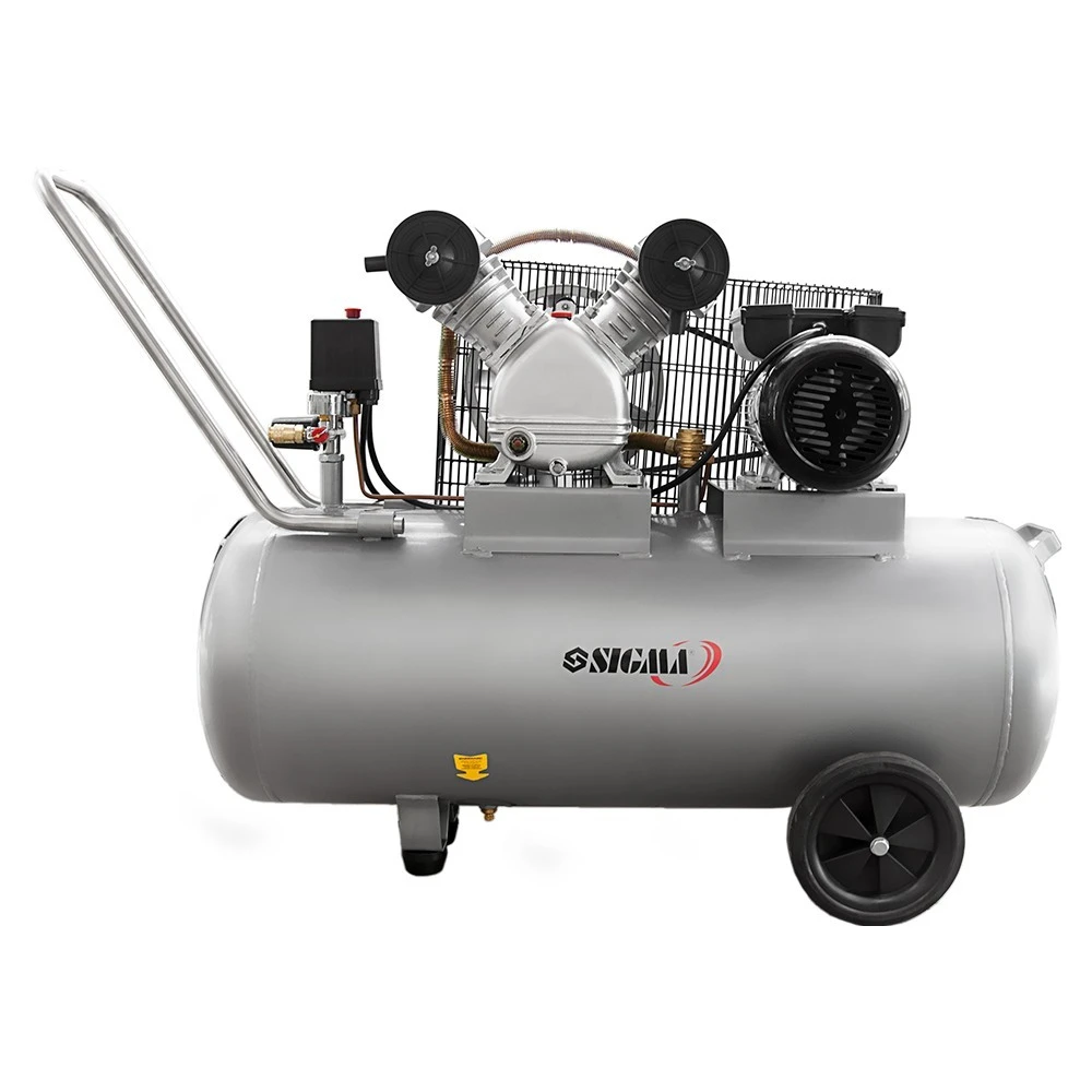Модель компресора Sigma (7044151) має потужність 2.5 кВт і великою продуктивністю 396 л / хв з високим тиском (до 10 бар). Даний компресор спроектований для професійного використання. Застосовується в будівництві, в невеликому виробництві, в майстернях на СТО. Ресивер місткістю 100 л дозволяє накопичувати більший обсяг стисненого повітря, що значно зменшує частоту включення двигуна, знижуючи навантаження на компресор і, відповідно, збільшує термін його служби.