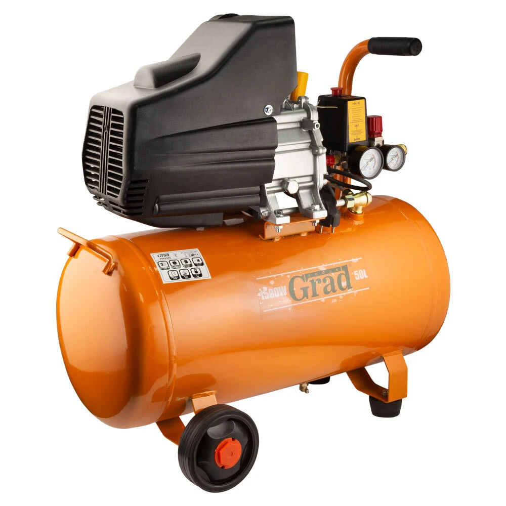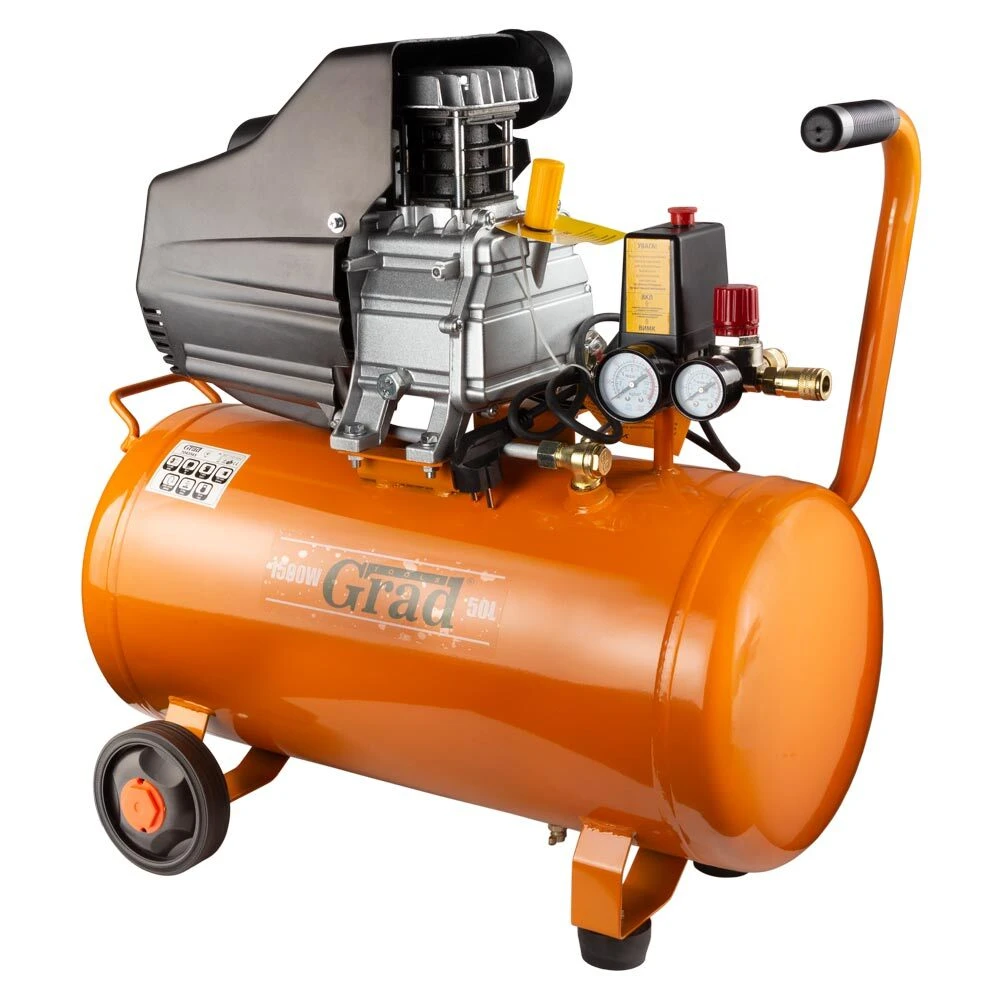 Компресор одноциліндровий 1.5кВт 198л/хв 8бар 50л (2 крана) GRAD (7043565)