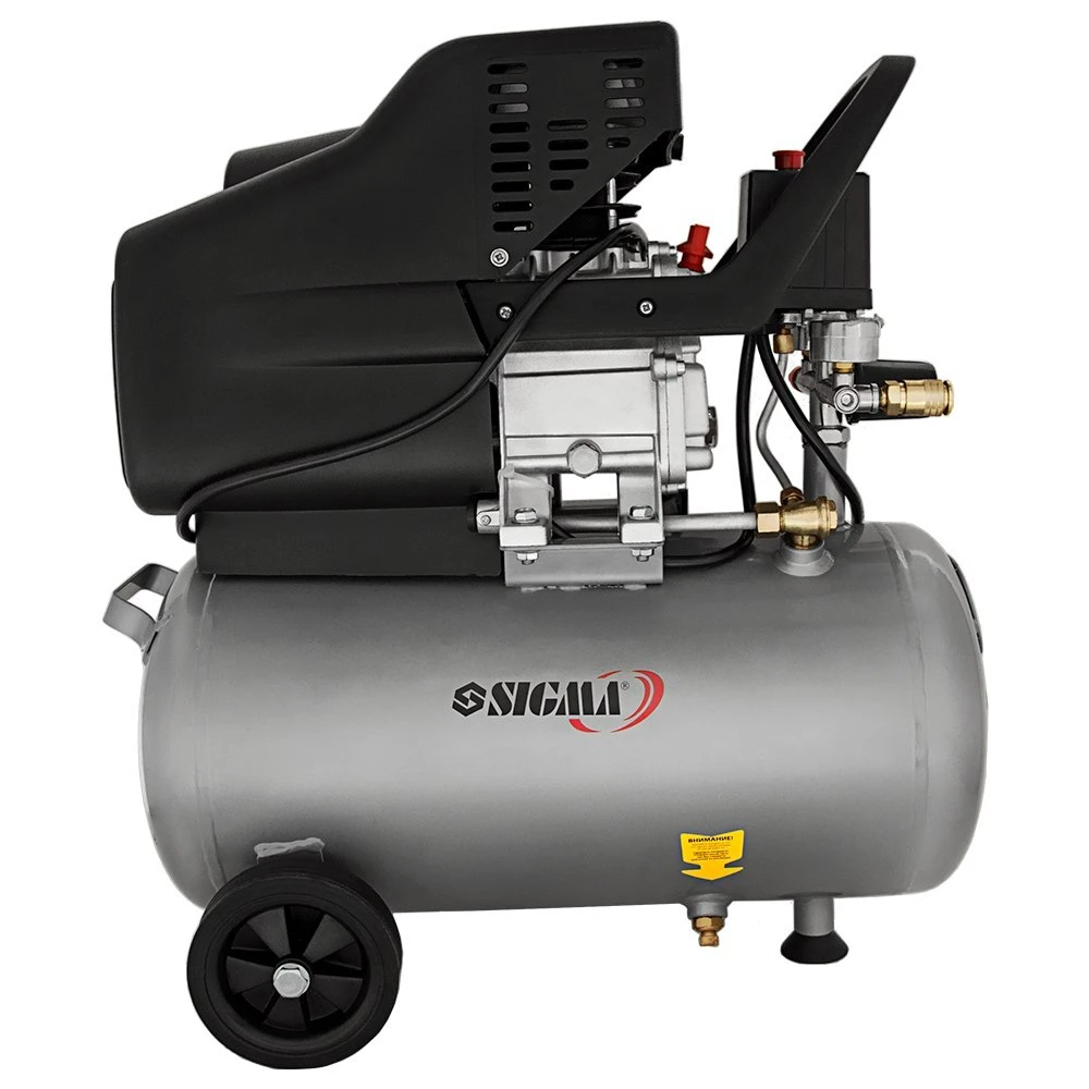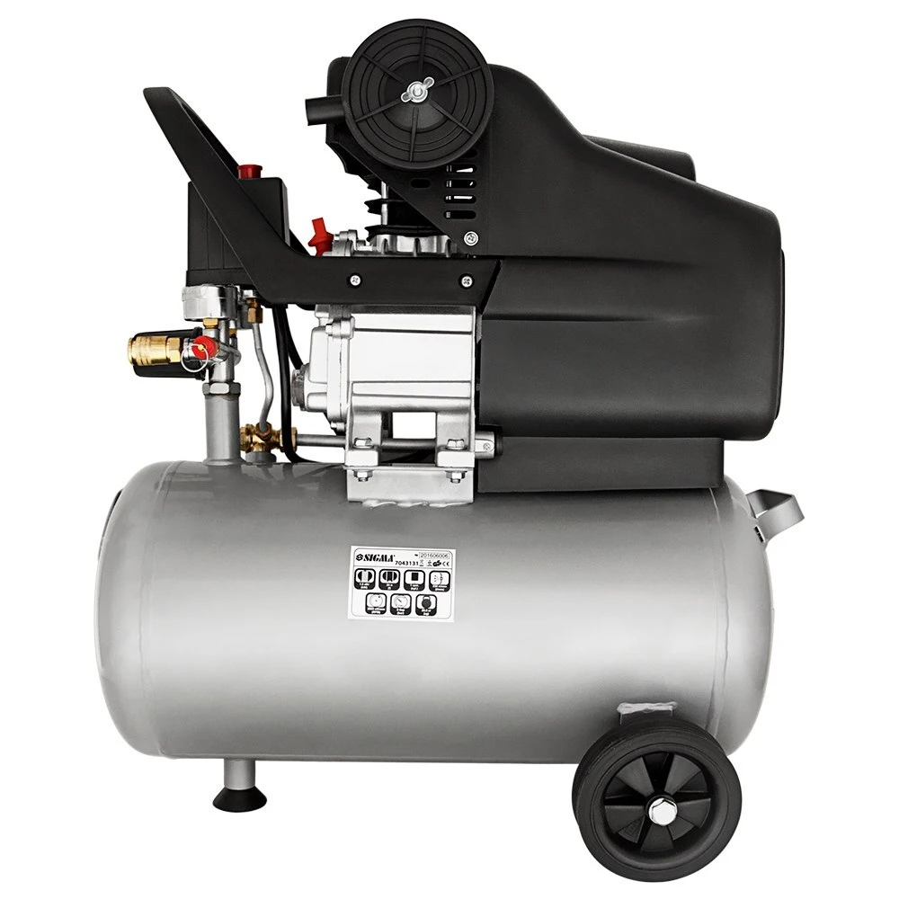 Компресор одноциліндровий 1.8кВт 230л/хв 8бар 24л (2 крана) SIGMA (7043131) призначений для нагнітання стисненого повітря з подальшою його подачею під тиском в різні типи пневмоінструменту і пневмообладнання.