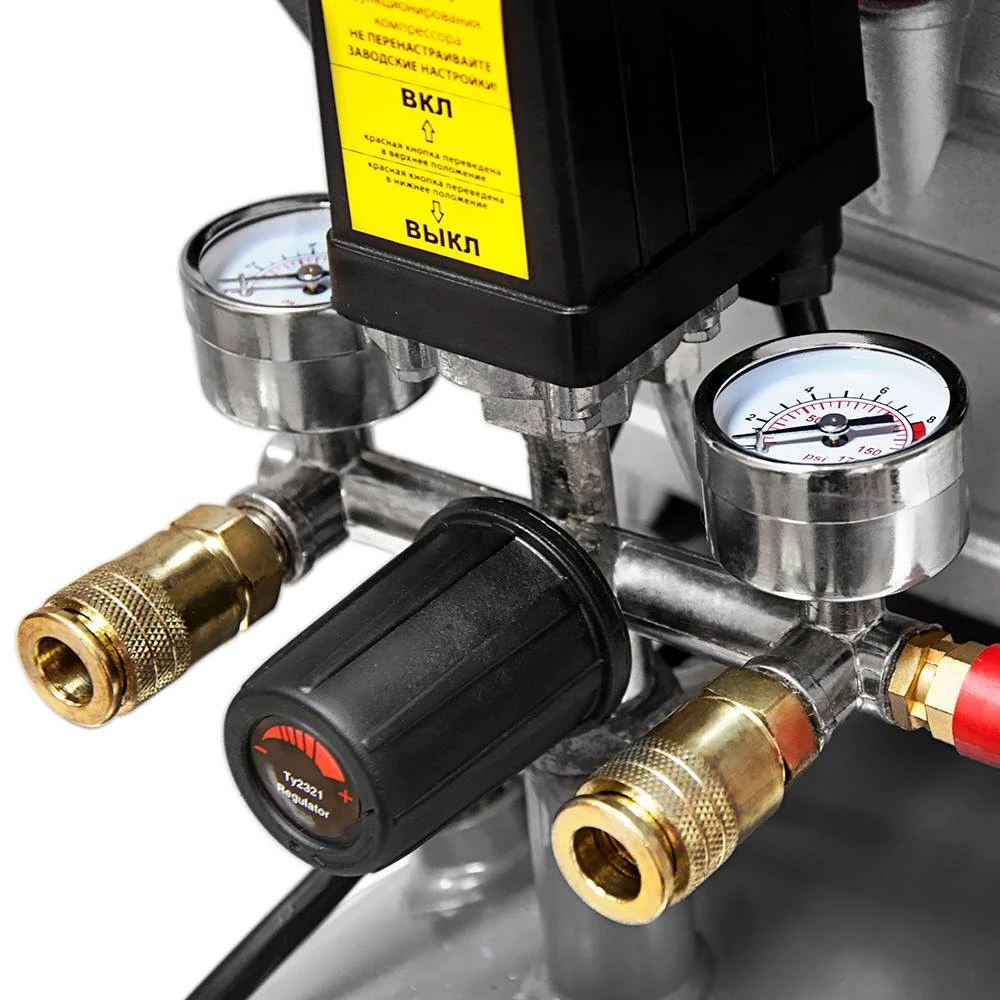 Два манометра дозволяють контролювати тиск всередині ресивера і тиск на виході