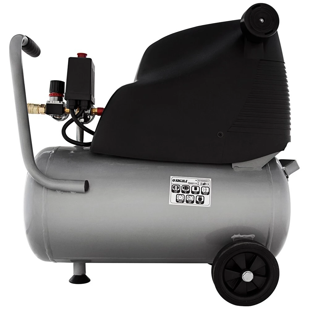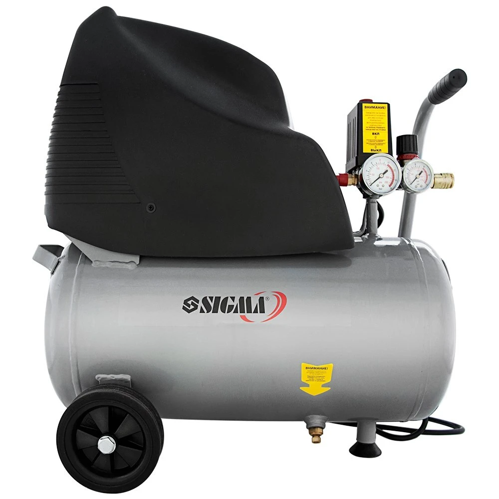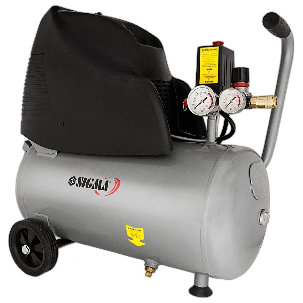 Компресор одноциліндровий безмасляний 1.5кВт 196л/хв 8бар 24л SIGMA (7042111) призначений для нагнітання стисненого повітря з подальшою його подачею під тиском в різні типи пневмоінструменту і пневмообладнання.