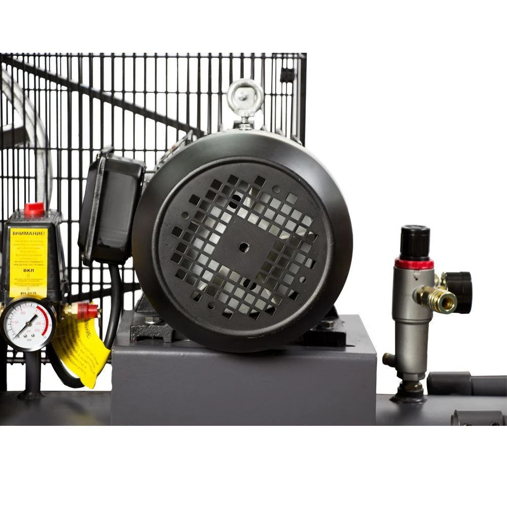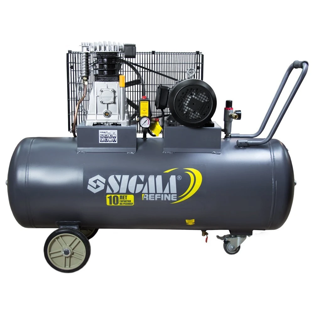 Компресор пасової двоциліндровий 380 3кВт 550л / хв 10бар 150л SIGMA REFINE (7044231) призначений для нагнітання стисненого повітря з подальшою його подачею під тиском в різні типи пневмоінструменту і пневмообладнання. Ремінний привід компресора закритий металевим кожухом, який запобігає від попадання сторонніх предметів. Опорна ніжка забезпечує стійке положення на поверхні, а гумова подушечка знижує рівень вібрації. Компресор спроектований для професійного застосування. Застосовується в будівництві і невеликому виробництві, на СТО і майстерень. Ресивер дозволяє накопичувати більший обсягом стисненого повітря, що значно зменшує частоту включення двигуна, зменшуючи навантаження на компресор і відповідно збільшує термін його служби.
