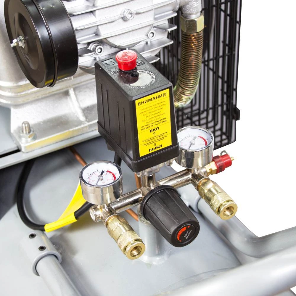 Два манометра дозволяють контролювати тиск всередині ресивера і тиск на виході;