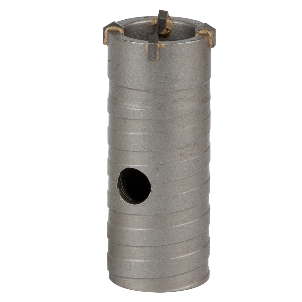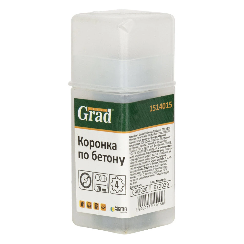 Коронка по бетону Ø30×70мм 4 зубці (тубус) GRAD (1514015) призначена для ударного свердління отворів в бетоні, цеглі, камені, твердих вапняках. Використовують з дрилями і перфораторами потужністю не менше 850 Вт.