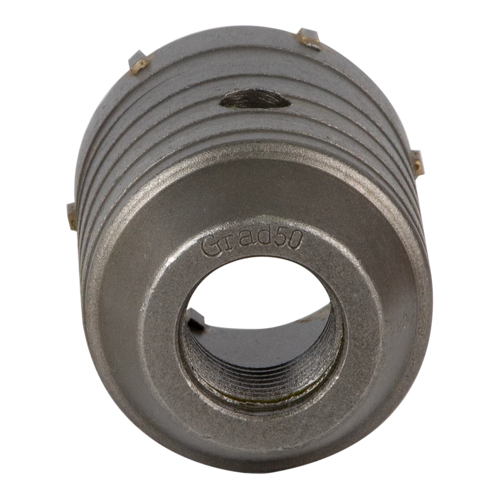 Коронка по бетону Ø50×70мм 6 зубців (тубус) GRAD (1514055) призначена для ударного свердління отворів в бетоні, цеглі, камені, твердих вапняках. Використовують з дрилями і перфораторами потужністю не менше 850 Вт.