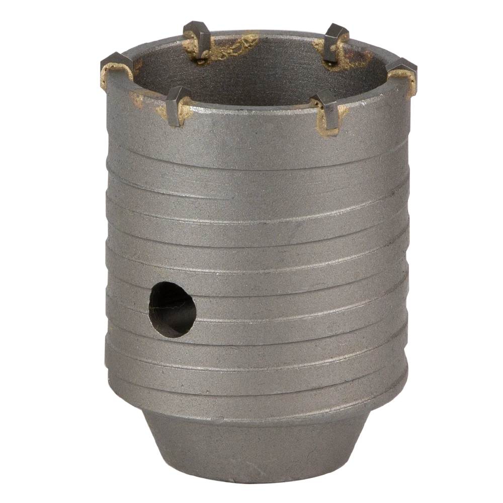 Коронка по бетону Ø55×70мм 6 зубців (тубус) GRAD (1514065) призначена для ударного свердління отворів в бетоні, цеглі, камені, твердих вапняках. Використовують з дрилями і перфораторами потужністю не менше 850 Вт.