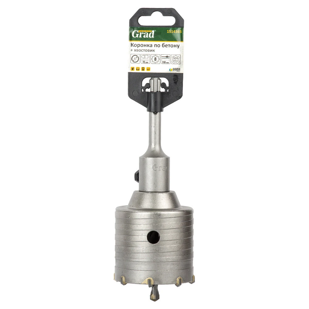 Коронка по бетону Ø65×70мм 8 зубців + хвостовик 110мм SDS-plus GRAD (1514365)