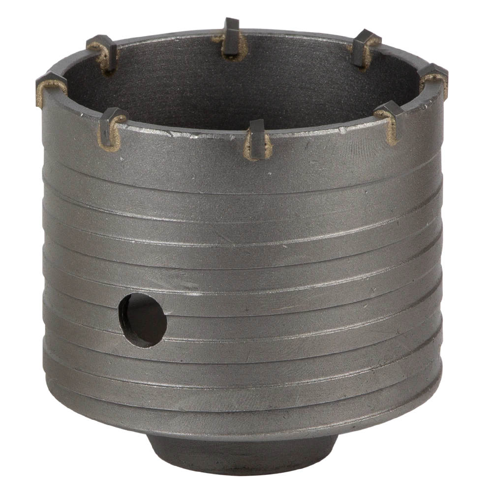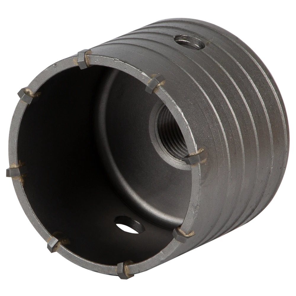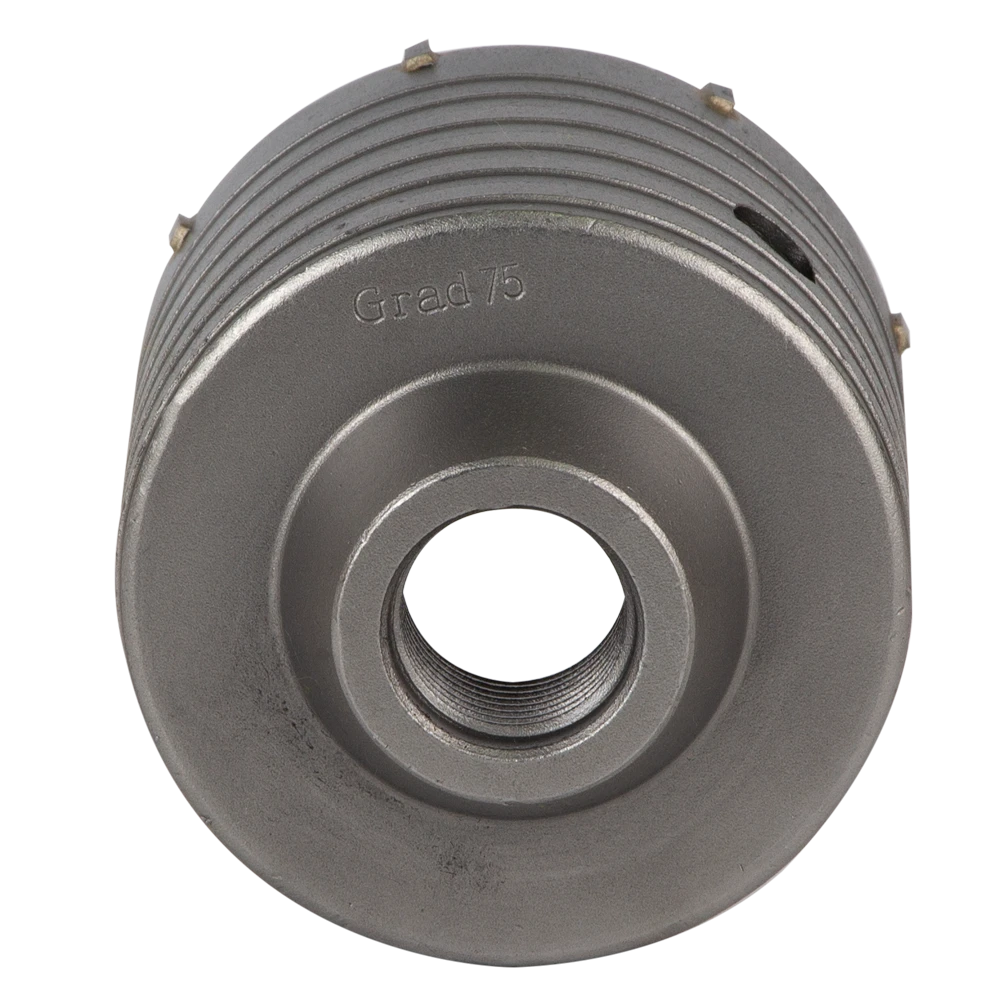 Коронка по бетону Ø75×70мм 8 зубців (тубус) GRAD (1514105) призначена для ударного свердління отворів в бетоні, цеглі, камені, твердих вапняках. Використовують з дрилями і перфораторами потужністю не менше 850 Вт.
