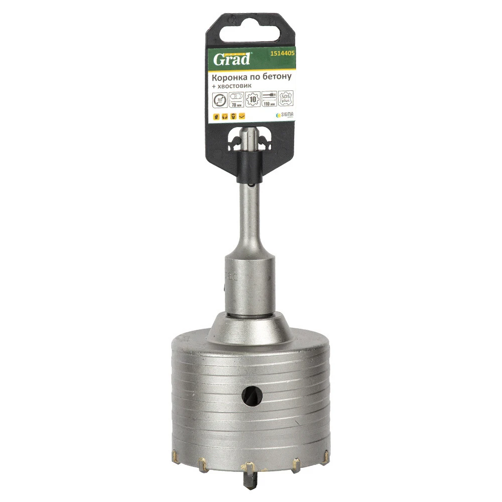 Коронка по бетону Ø80×70мм 10 зубців + хвостовик 110мм SDS-plus GRAD (1514405)