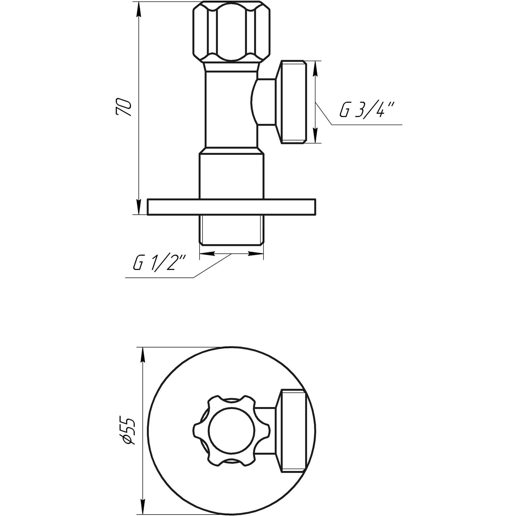 Кран кутовий вентильний 1/2 ″х 3/4″ подовжений SOLOMON 160403
