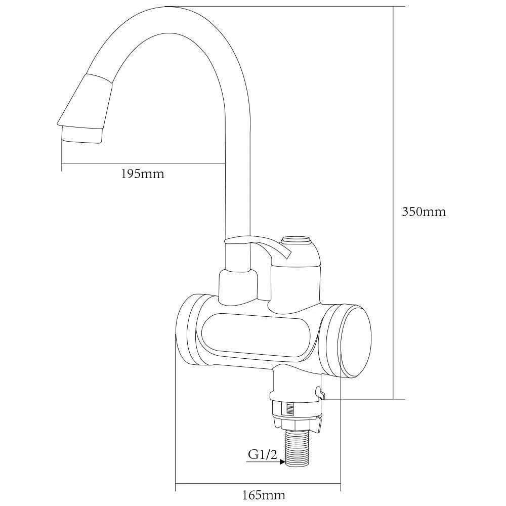 Даний проточник складається з термостійкого корпусу з цифровим дисплеєм і нагрівальними елементами. Регулювати температуру і натиск струменя допомагає ручка типу важеля. Гусак J-подібної форми, поворотний, аератор вбудований.