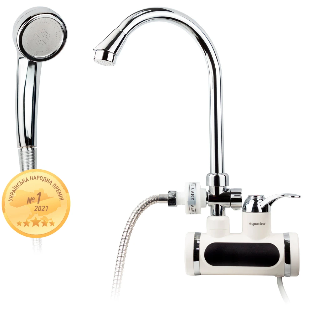 Кран-водонагрівач проточний JZ 3.0кВт 0.4-5бар для ванни гусак вухо настінний AQUATICA (JZ-7C141W)