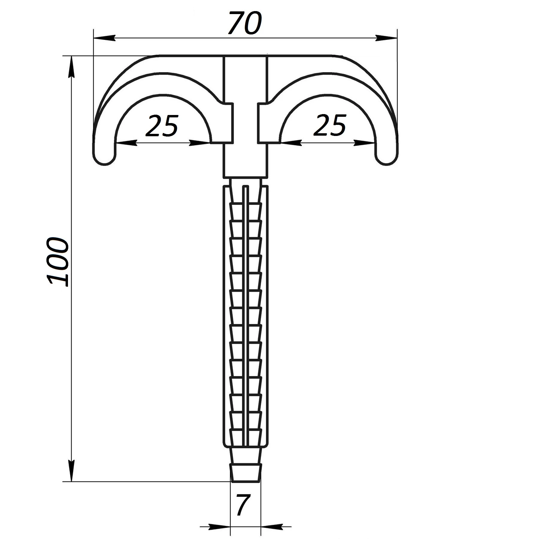 Кріплення-гак забивне подвійне для труби Ø16-25, довжина 100мм, біла (100шт)