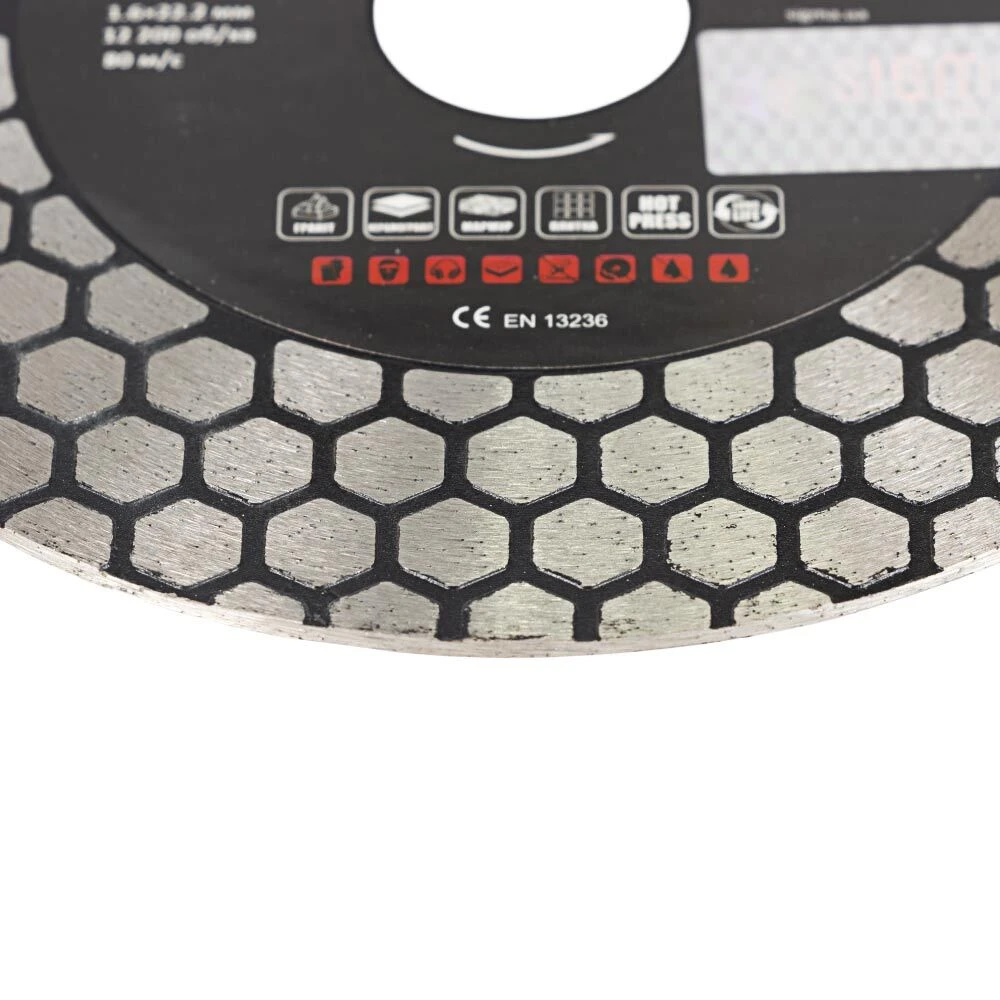 Оптимально підібрані компоненти металевої зв'язки з високою консентрацією високоякісних синтетичних алмазів, прикріплені до основи круга методом гарячого пресування алмазів (HOT PRESS), забезпечують тривалу експлуатацію та гарантують тривалий робочий ресурс круга під час роботи навіть із найскладнішими в обробці матеріалами.