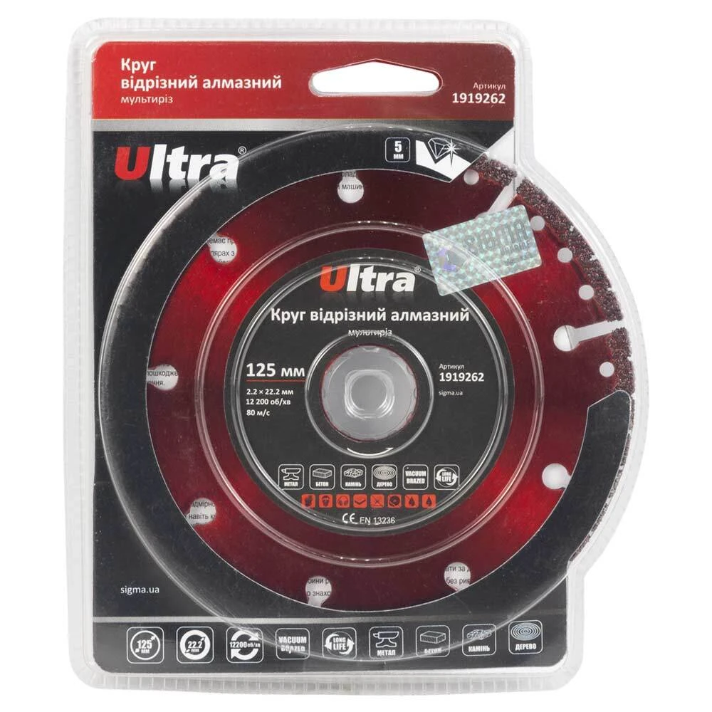 Круг відрізний алмазний Мультиріз Ø125×22.2мм ULTRA (1919262) призначений для сухого та мокрого різу металу, арматури, залізобетону, бетону, каменю, граніту, цегли, пластику, дерева та інших будівельних матеріалів. Ідеально підходить для різання тонкого металу. Часто використовується як універсальний ріжучий інструмент у професійній сфері.