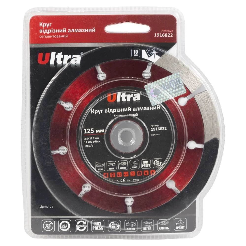 Круг відрізний алмазний сегментований Ø125×22.2мм ULTRA (1916822) призначений для різання бетону, граніту, цегли, каменю, черепиці, асфальту та інших будівельних матеріалів без примусового охолодження. Корпус виготовлений із міцної сталі, здатної витримати значні механічні навантаження ти високу температуру. Добре збалансована основа зменшує вібрацію на інструмент та забезпечує високу надійність під час експлуатації.