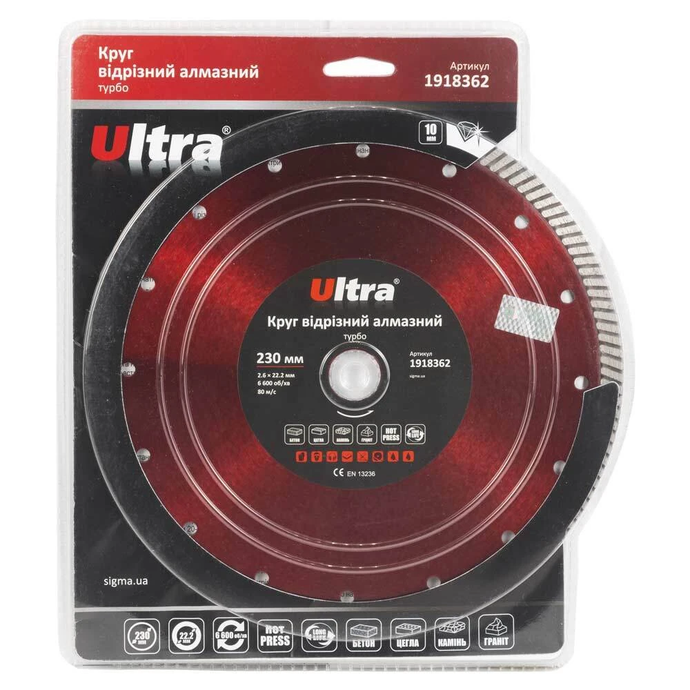 Круг відрізний алмазний Турбо Ø230×22.2мм ULTRA (1918362) призначений для різання бетону, граніту, цегли, каменю, мармуру та інших будівельних матеріалів без примусового охолодження. Корпус виготовлений із міцної сталі, здатної витримати значні механічні навантаження та високу температуру. Добре збалансована основа зменшує вібрацію на інструмент та забезпечує високу надійність під час експлуатації.