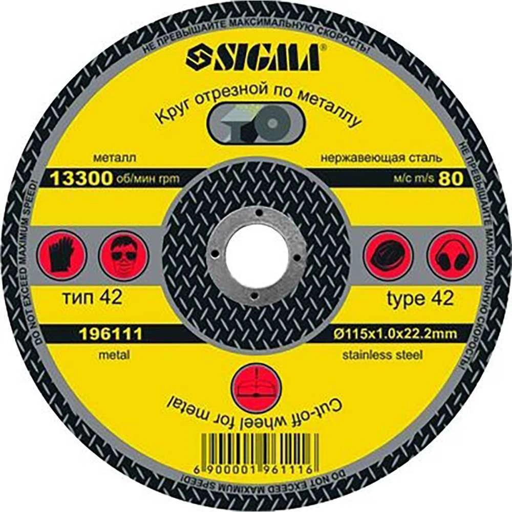 Круг відрізний по металу Ø115×2.5×22.2мм, 13300об/хв SIGMA (1941261) призначений для різання виробів з металів і нержавіючої сталі, роботи з кузовною сталлю і іншими аналогічними матеріалами. Робочим інструментом при роботі відрізного круга є кутова шліфувальна машина (КШМ, болгарка).