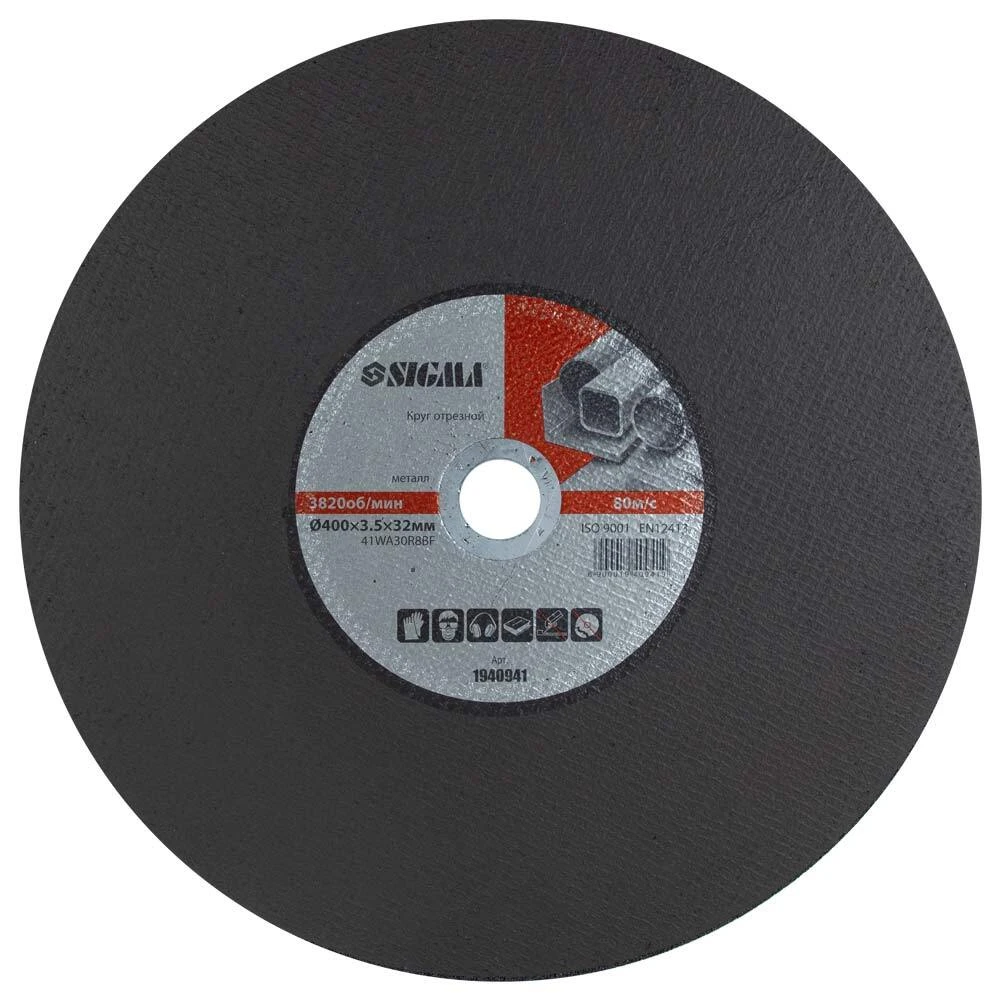 Круг відрізний по металу Ø400×3.5×32мм SIGMA (1940941) призначений для різання виробів з металу, роботи з кузовний сталлю і іншими аналогічними матеріалами.