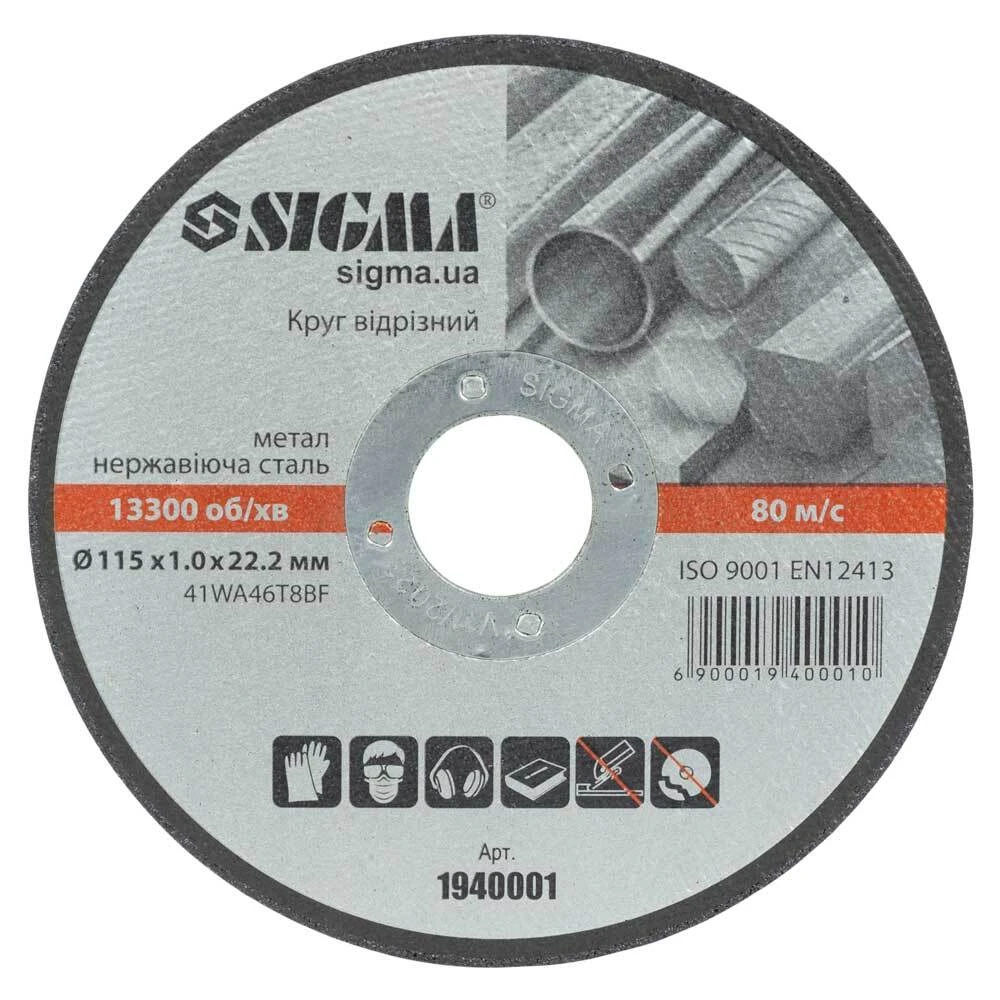 Круг відрізний по металу та нержавіючої сталі Ø115×1.0×22.2мм, 13300об/хв SIGMA (1940001) призначений для різання виробів з металів і нержавіючої сталі, роботи з кузовний сталлю і іншими аналогічними матеріалами. Робочим інструментом при роботі відрізного кола є кутова шліфувальна машина (КШМ, "болгарка").