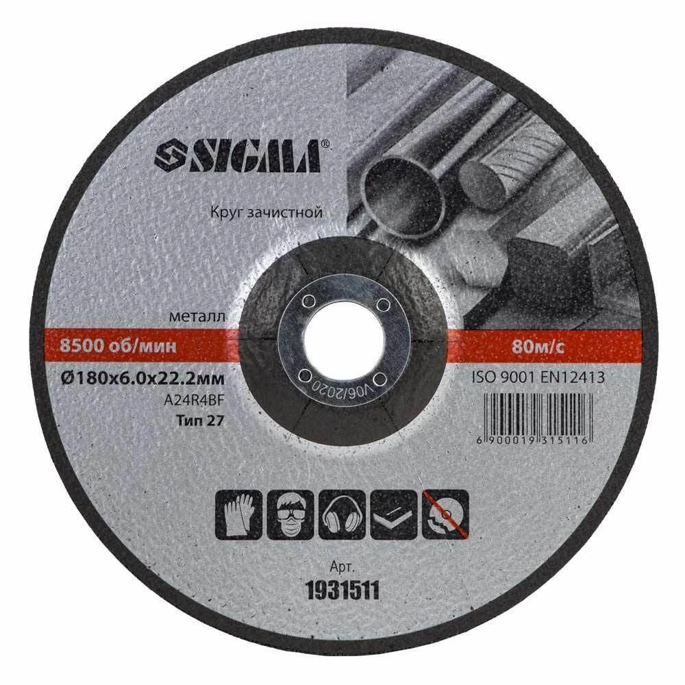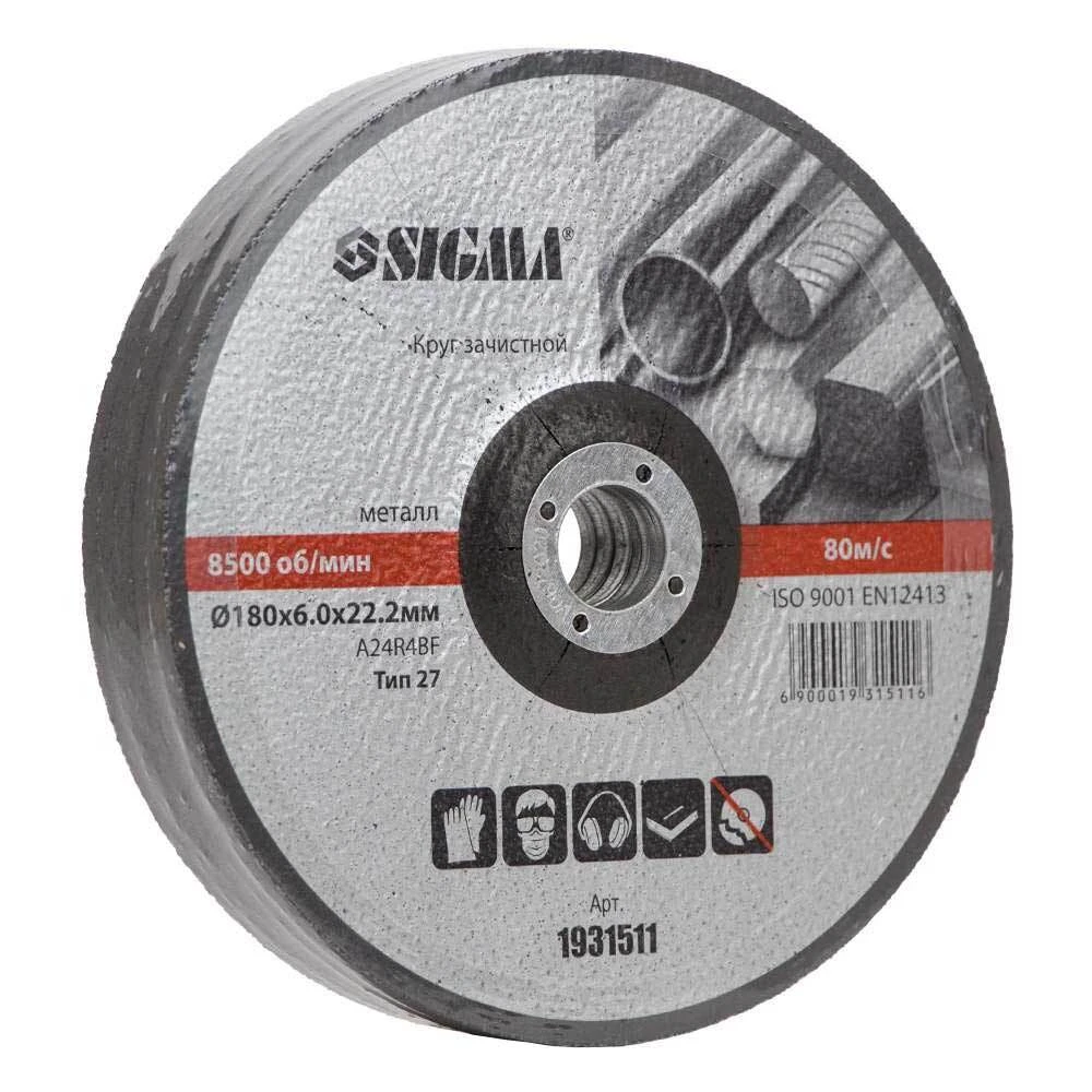 Круг зачисний по металу Ø180×6.0×22.2мм, 8500 об/хв SIGMA (1931511) застосовується для шліфування зварних швів і з'єднань після зварювання, для зачистки поверхонь і кромок перед зварюванням, обдирання окалини та видалення іржі.