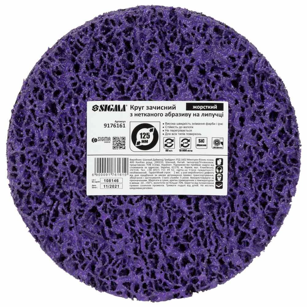 Круг зачистний з нетканого абразиву (корал) Ø125мм на липучці фіолетовий жорсткий SIGMA (9176161)