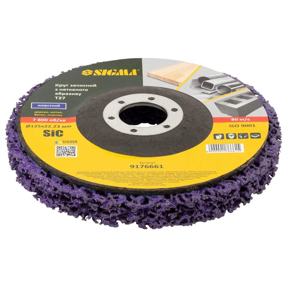 Круг зачистний з нетканого абразиву (корал) Т27 Ø125×22.23мм фіолетовий жорсткий SIGMA (9176661)
