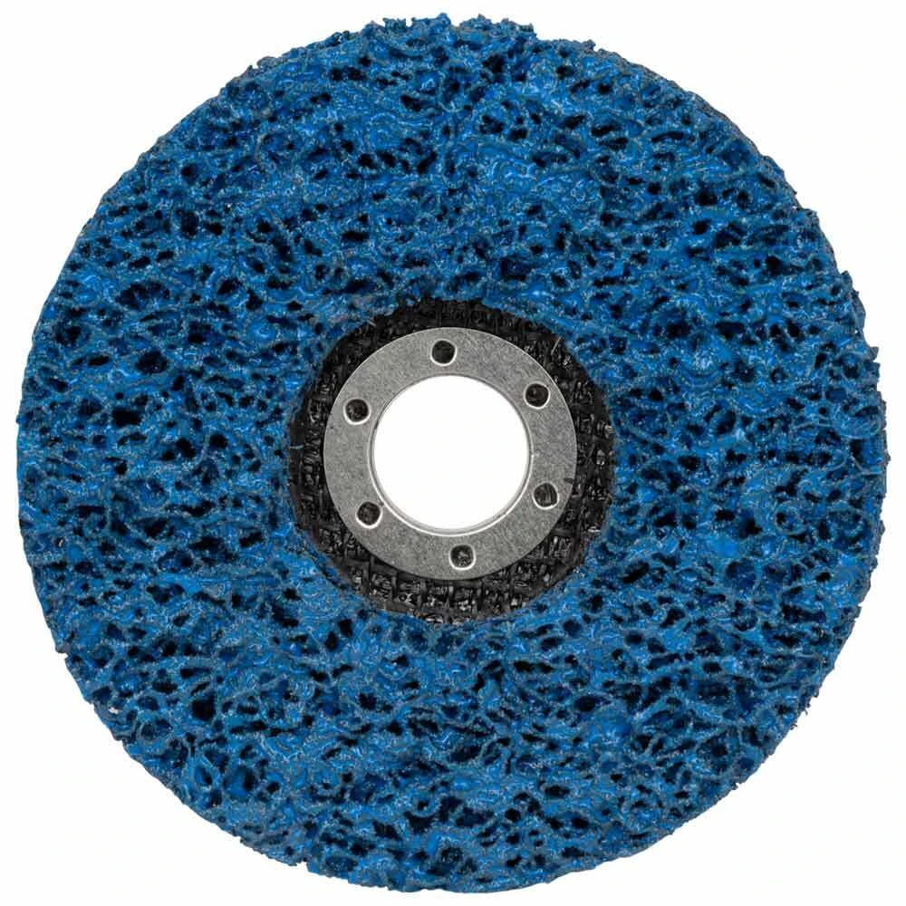 Синій круг – універсальне рішення середньої жорсткості. Відмінно видаляє фарбу, іржу і невелику окалину з металевих і дерев'яних поверхонь.