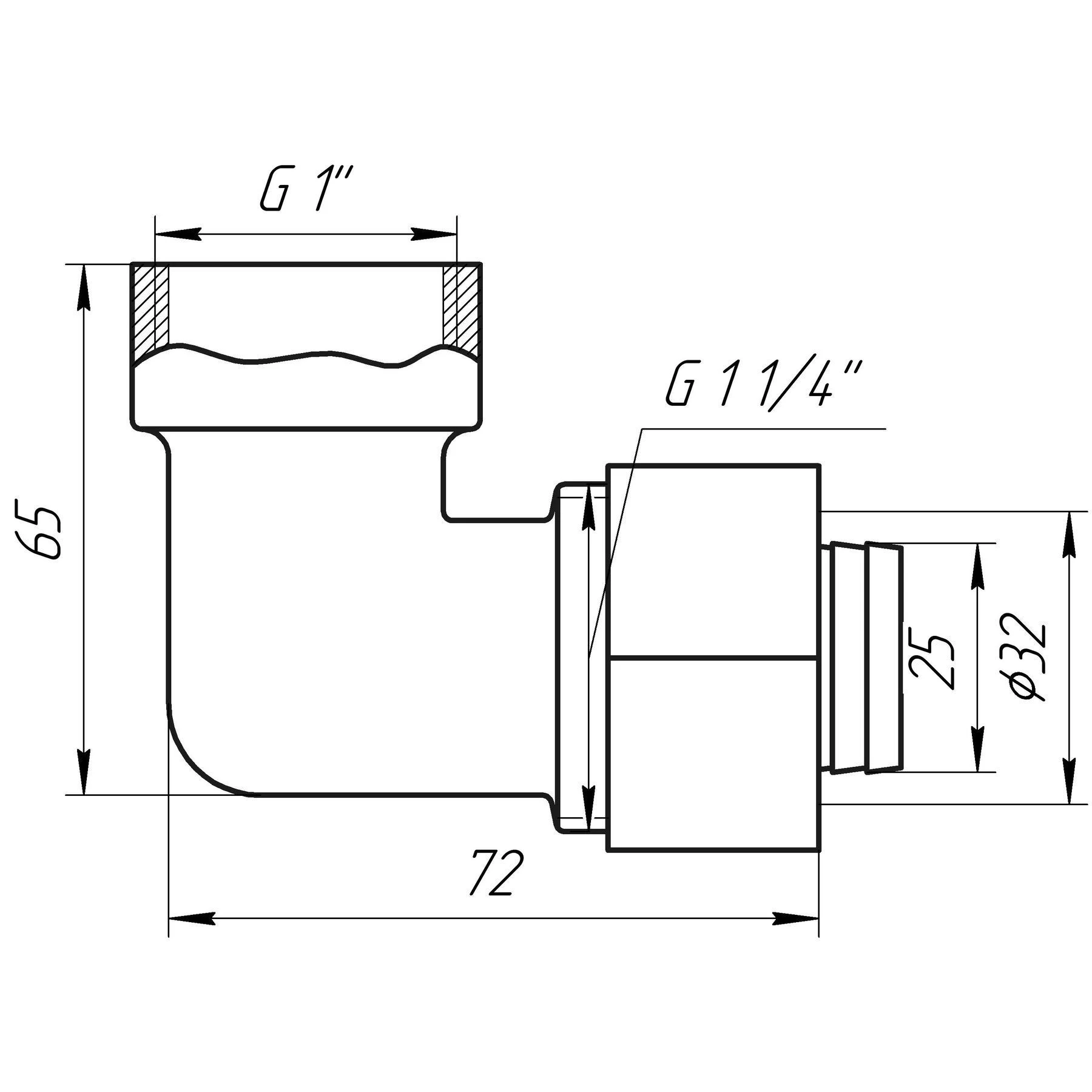 Габарити: 1″х32 на 32 металопластикову трубу