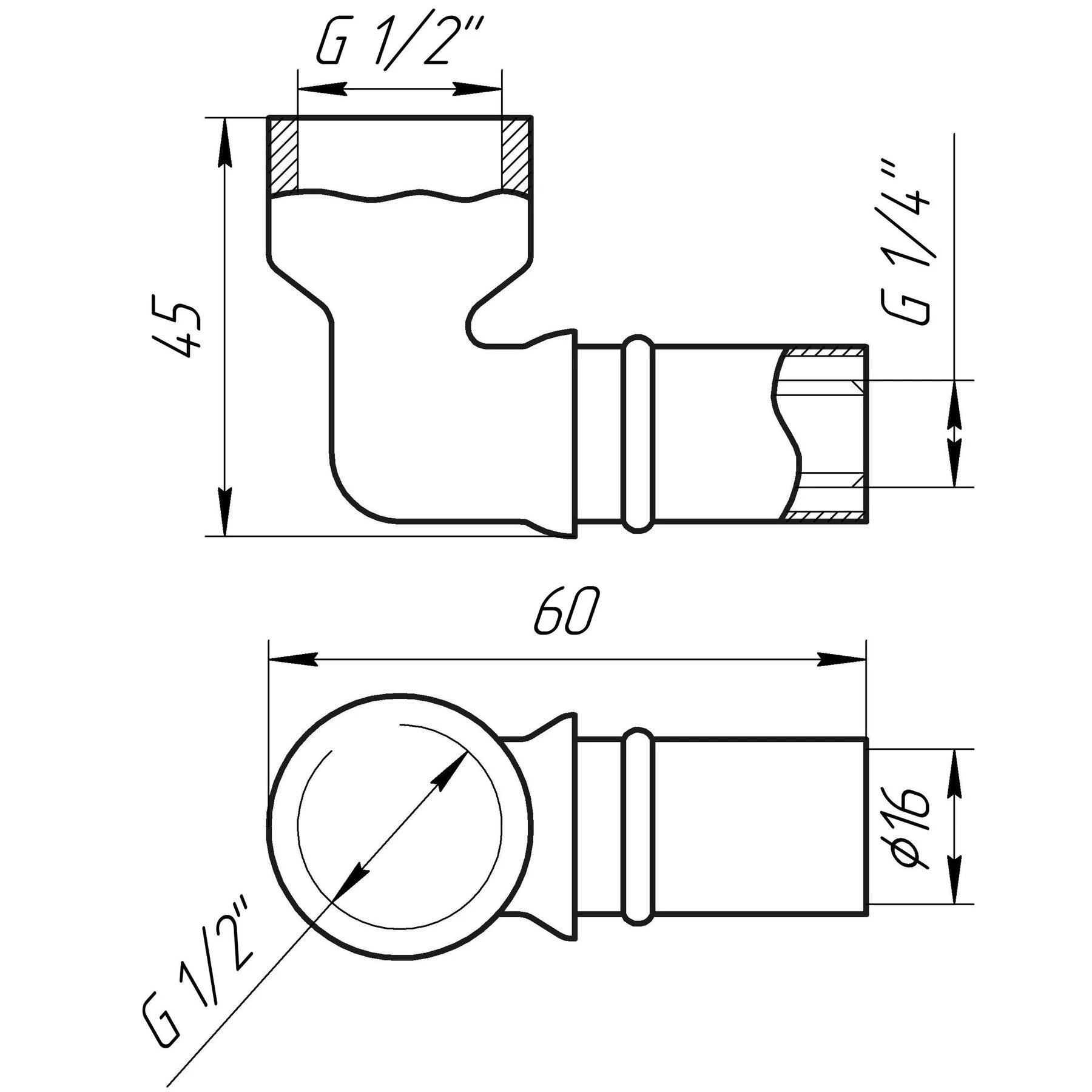 Габарити: 16 * 1/2″ на 16 металопластикову трубу