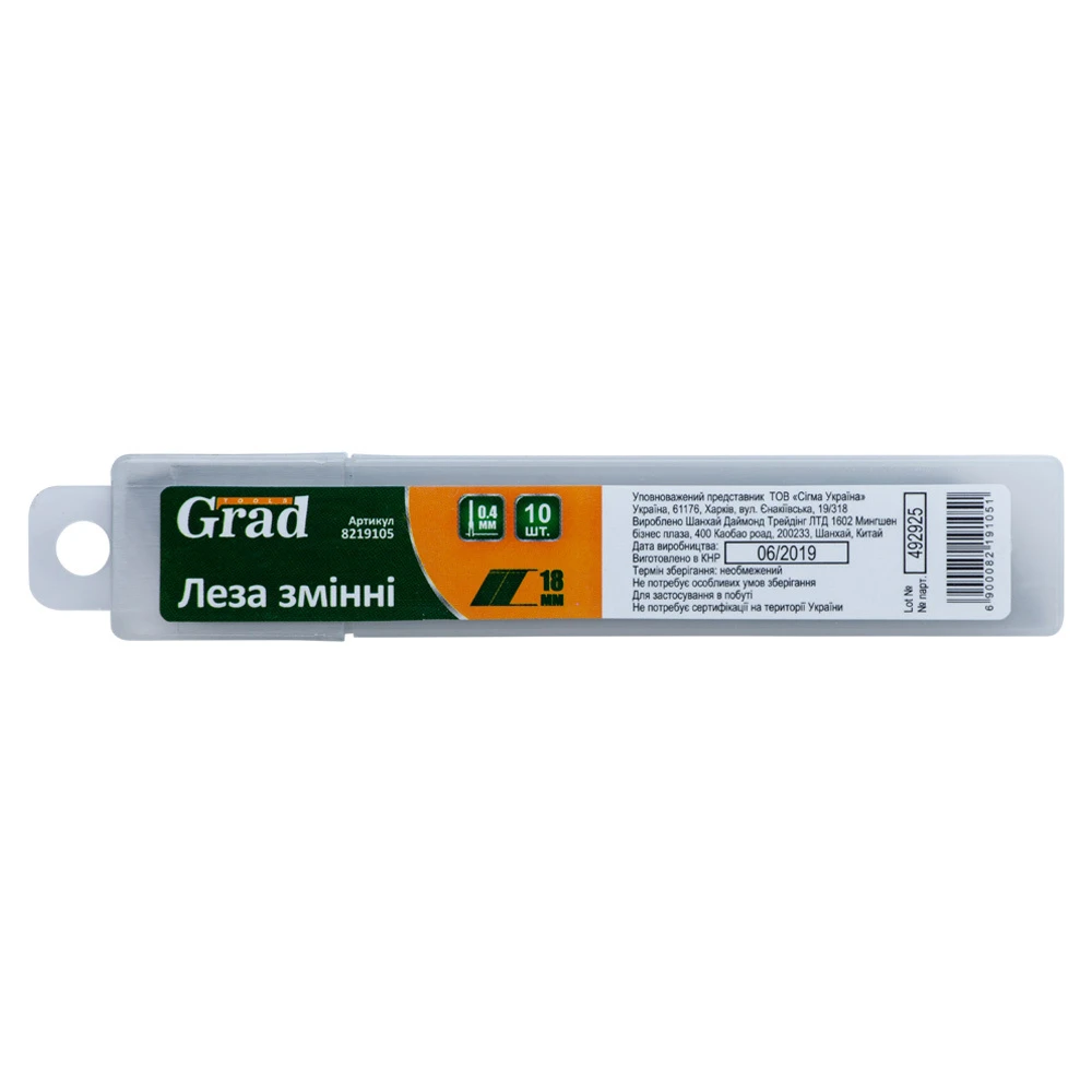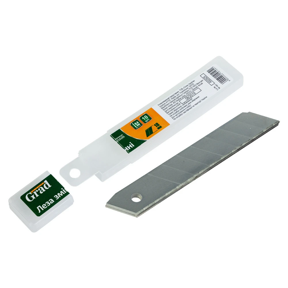 Леза змінні прямі 100×18×0.4мм 7 сегментів 10шт GRAD (8219105) використовуються як змінний елемент для ножів прямої форми, які застосовують при виконанні оздоблювальних робіт: різання шпалер, пінопласту, мінеральної вати, гіпсокартону та інших матеріалів.