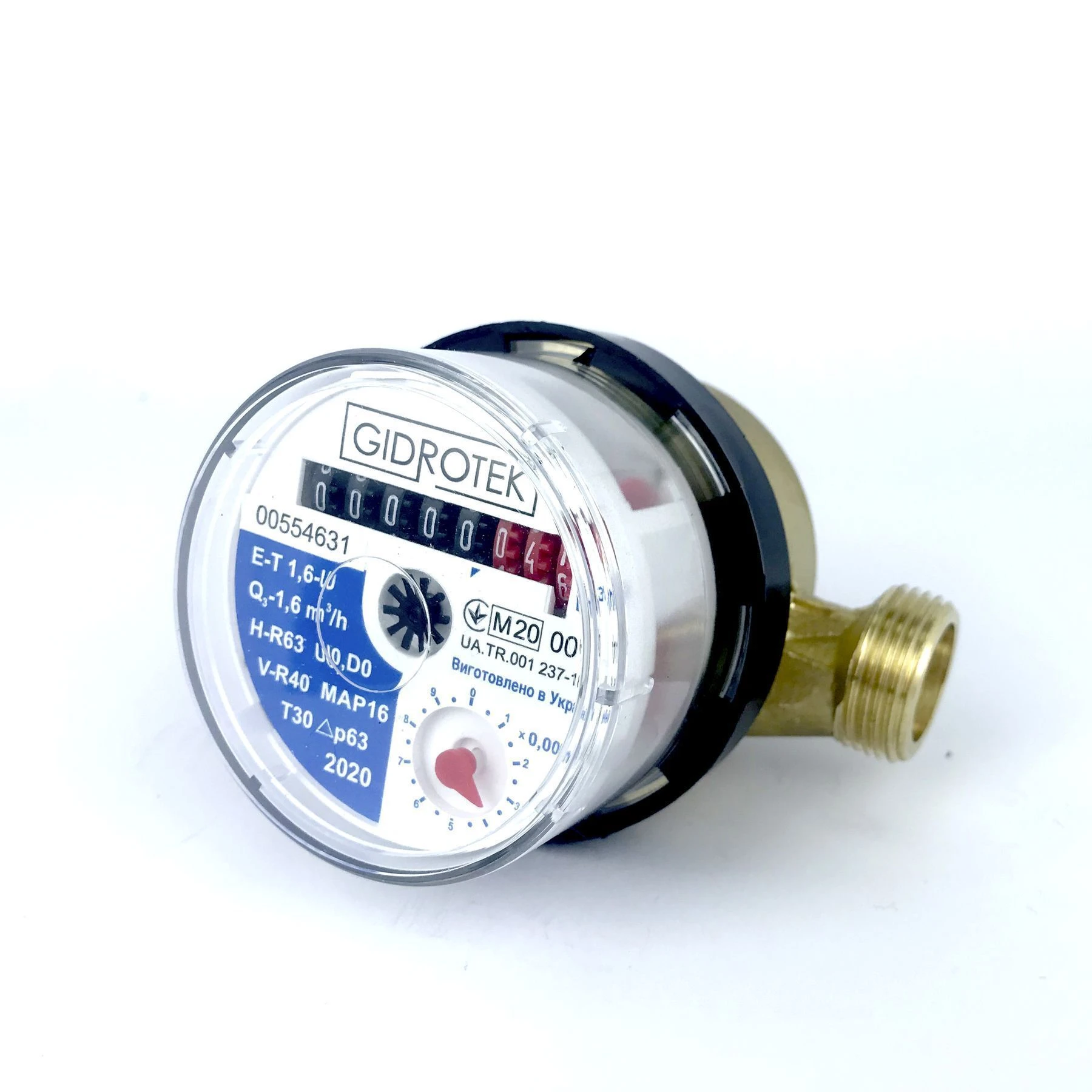Лічильник води Gidrotek Е-Т 1,5U для холодної води зі штуцером - призначений для вимірювання об'єму холодної і гарячої води, що протікає по трубопроводу.