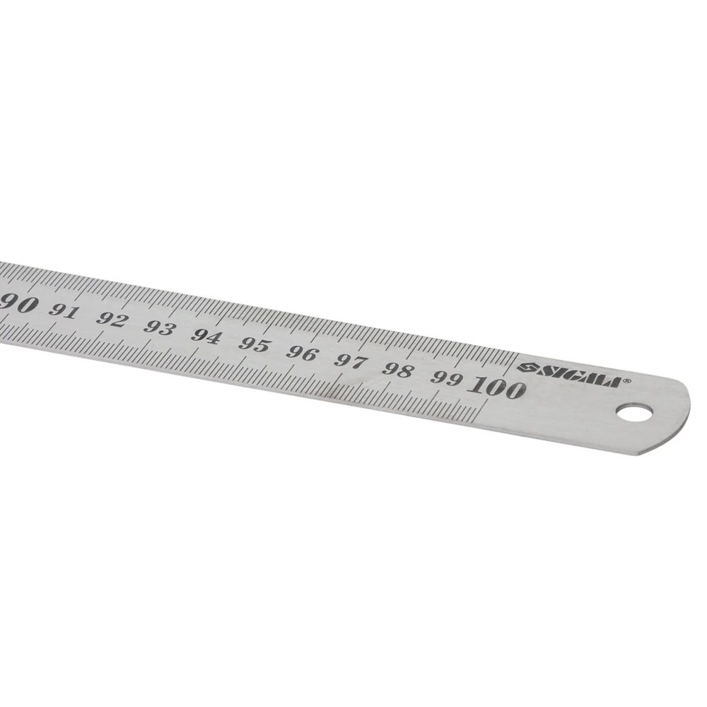 Лінійка нержавіюча 1000мм SIGMA (3610101) - призначена для вимірювання довжини. Нанесене захисне покриття, що захищає від стирання, впливу агресивних хімічних речовин тощо. Штампована метрична шкала.