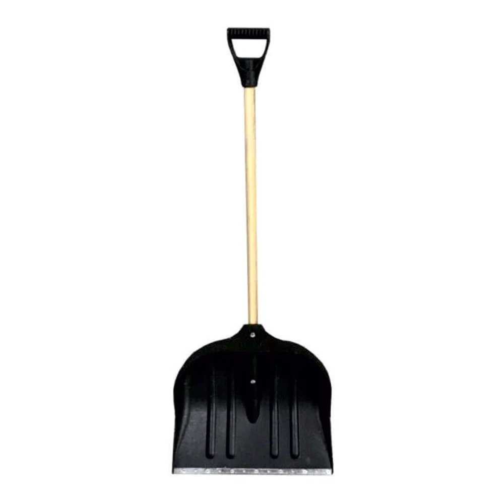 Лопата для снігу/зерна пластикова з оцинкованою планкою Standard 395×395мм з дерев'яним держаком (чорна) GRAD (5046565) застосовується для очищення прибудинкових територій, стежок, тротуарів і плоских дахів від снігу.