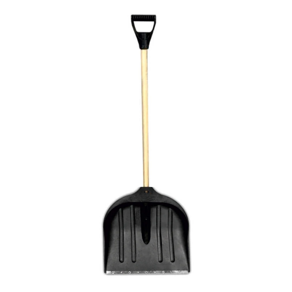 Лопата для снігу/зерна пластикова з оцинкованою планкою Standard 490×495мм з дерев'яним держаком (чорна) GRAD (5046585) застосовується для очищення прибудинкових територій, стежок, тротуарів і плоских дахів від снігу.