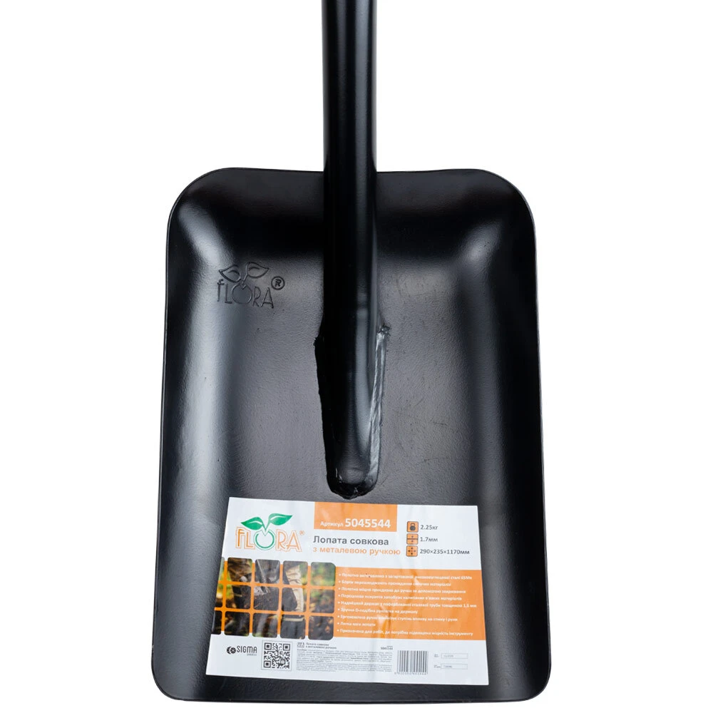 Лопата совкова з металевою ручкою 290×235×1170мм 2.25кг FLORA (5045544) це ручний інструмент, призначений для копання, розчищення або перенесення ґрунтів та інших сипучих і рихлих матеріалів.