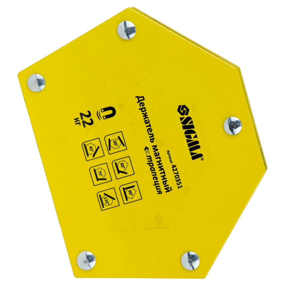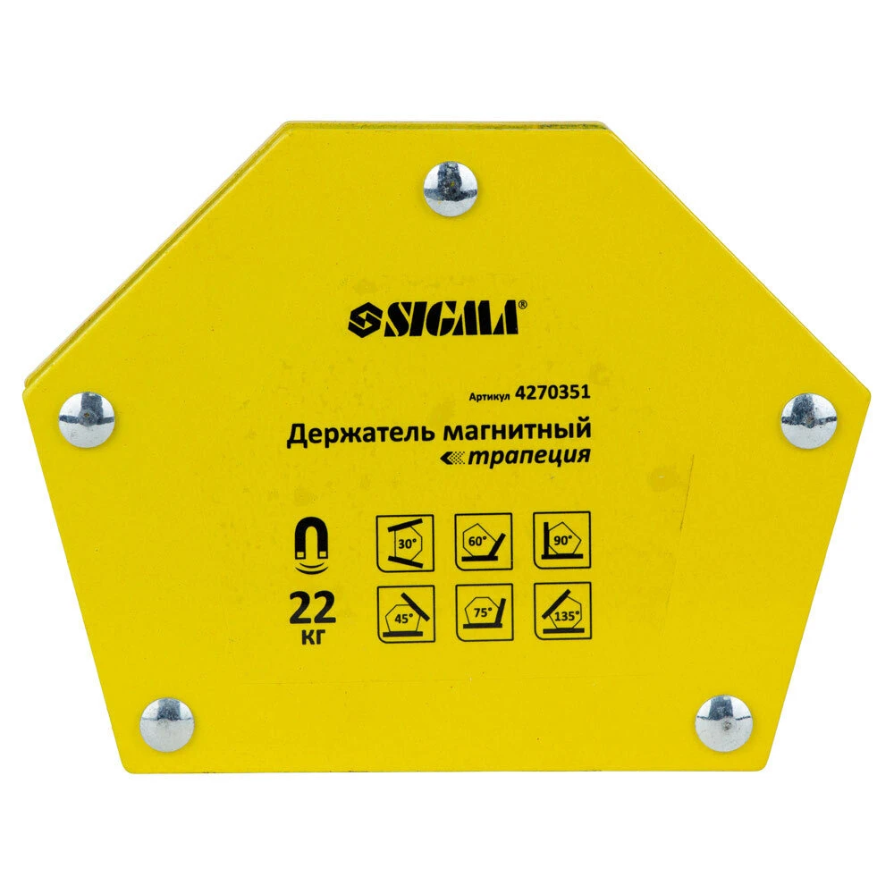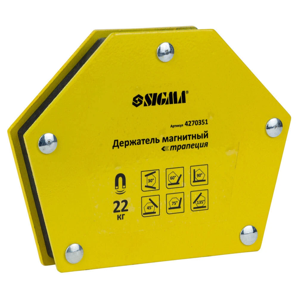 Магніт для зварювання трапеція 22кг 90×54×54×43мм (30,45,60,75,90,135°) SIGMA (4270351) призначений для точної фіксації деталей під виставленим, правильним кутом під час проведення зварювальних робіт, пайки та інших операцій під час виготовлення сталевих металоконструкцій.