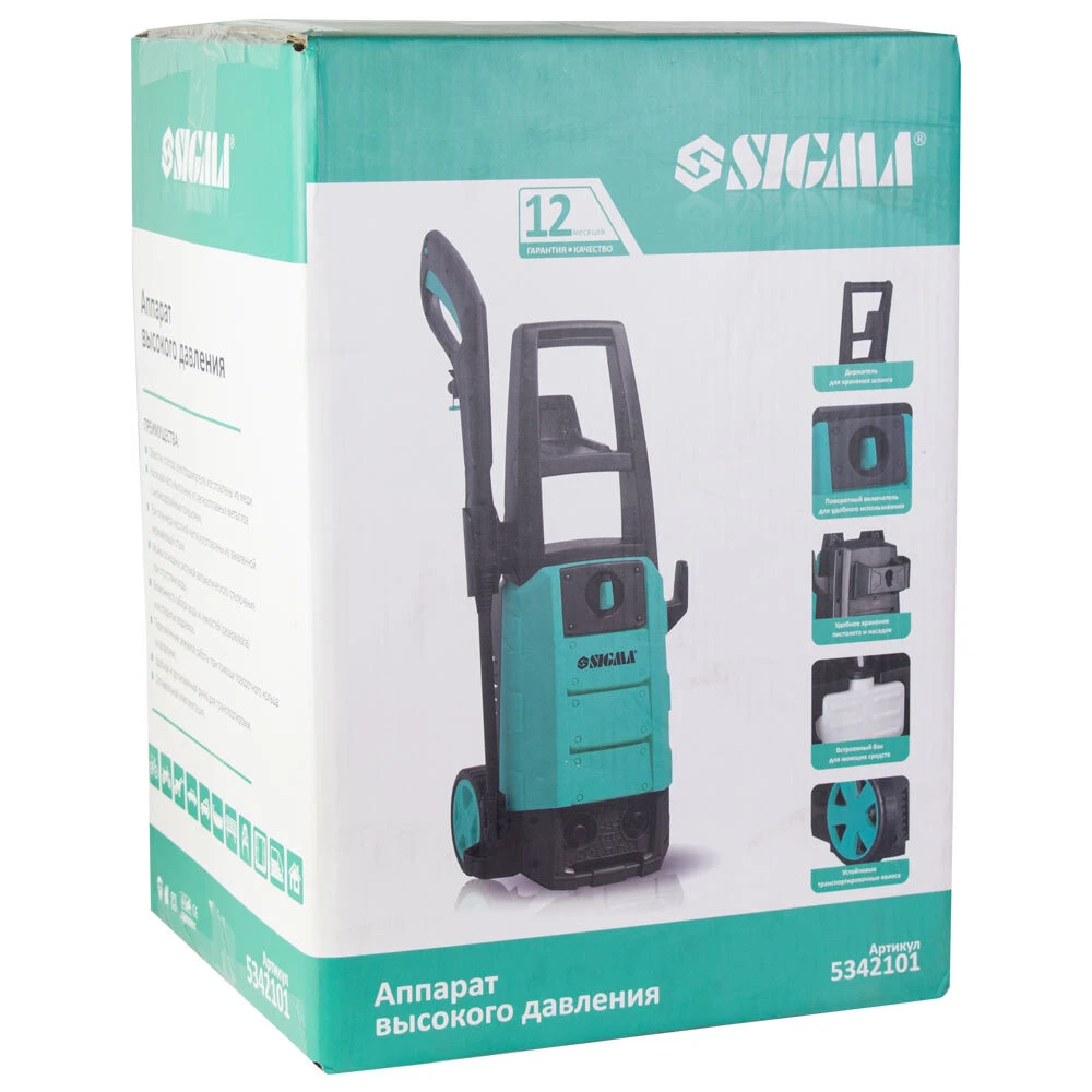 Мийка високого тиску 2000Вт max 150bar 7.2 л/хв + турбонасадка SIGMA (5342101) призначена для миття різних транспортних засобів (велосипедів, мотоциклів, автомашин та їх двигунів), садового інвентарю, тротуарної та фасадної плитки, садових доріжок, фасадів будівель, а також для прочищення дощових зливів із застосуванням чистої води і хімічних миючих засобів.