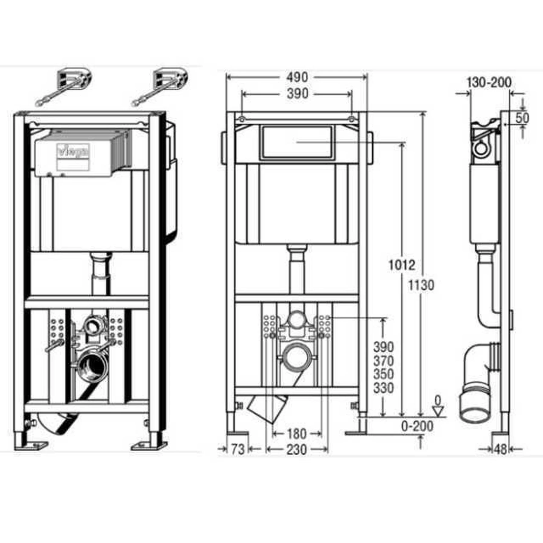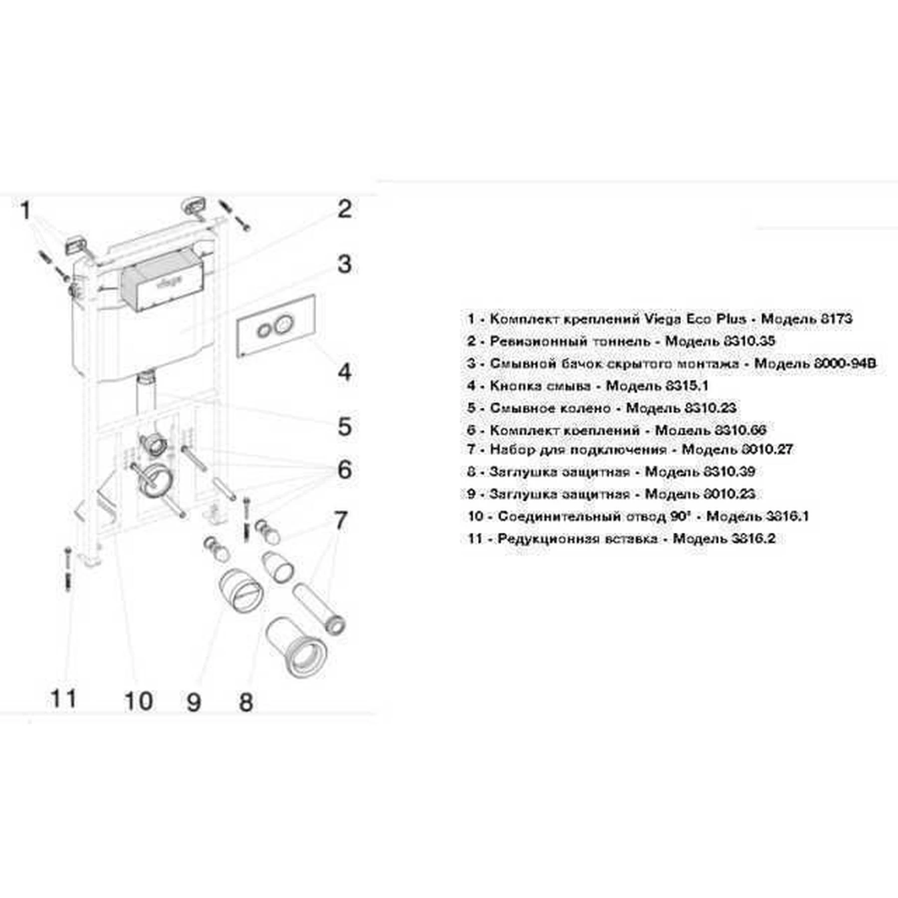 Розміри модуль-бачок Еco Plus для унітазу 1130х490 фронтальний комплект хром кнопка 660321 (див. мал.)