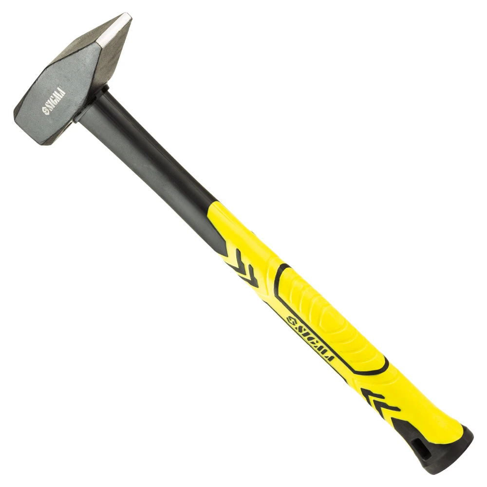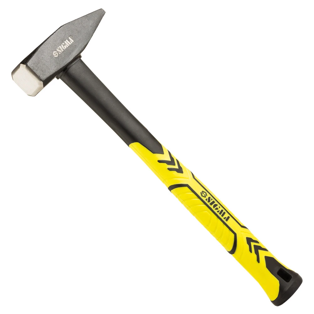 Молоток 800г слюсарний фібергласова ручка SIGMA (4316081) застосовується для забивання цвяхів, ручного згинання або кування профільного металу, і так далі. Має міцну ручку зі скловолокна з гумовим покриттям проти ковзання, яке не гниє, не всихає, гасить вібрації, стійке до дії масел, бензину і розчинників. Робоча частина виготовлена з кованої, полірованої інструментальної сталі.