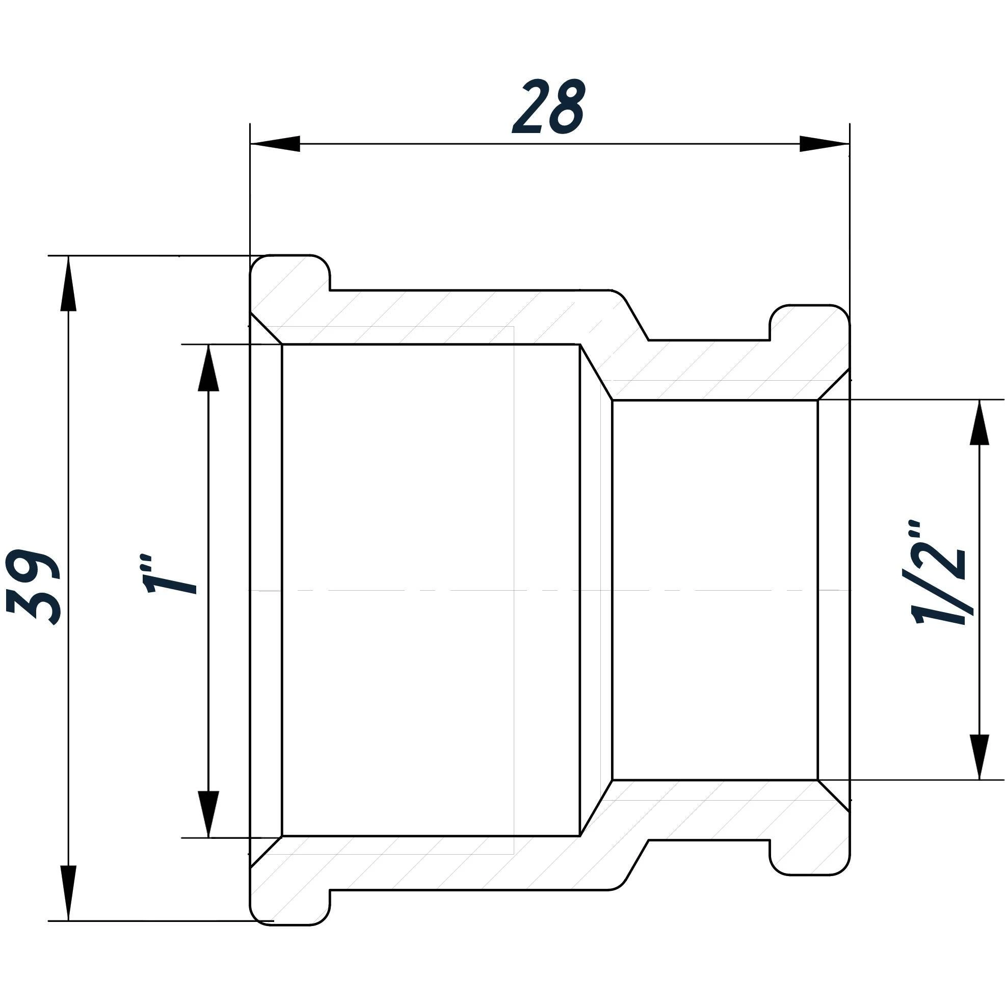 -З'єднання: 1″Внутрішня Різьба х 1/2″Внутрішня Різьба