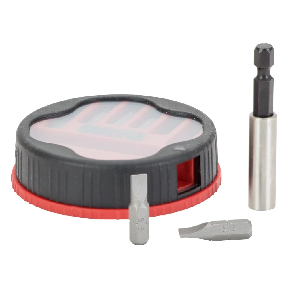 Насадки виготовлені з легованої сталі марки S2, що пройшла гарт і поєднує в собі високу твердість (53-54 HRC) зі зносостійкістю. Укомплектовані магнітним тримачем, для швидкої та надійної фіксації біт, та пластмасовим боксом для зберігання та транспортування.