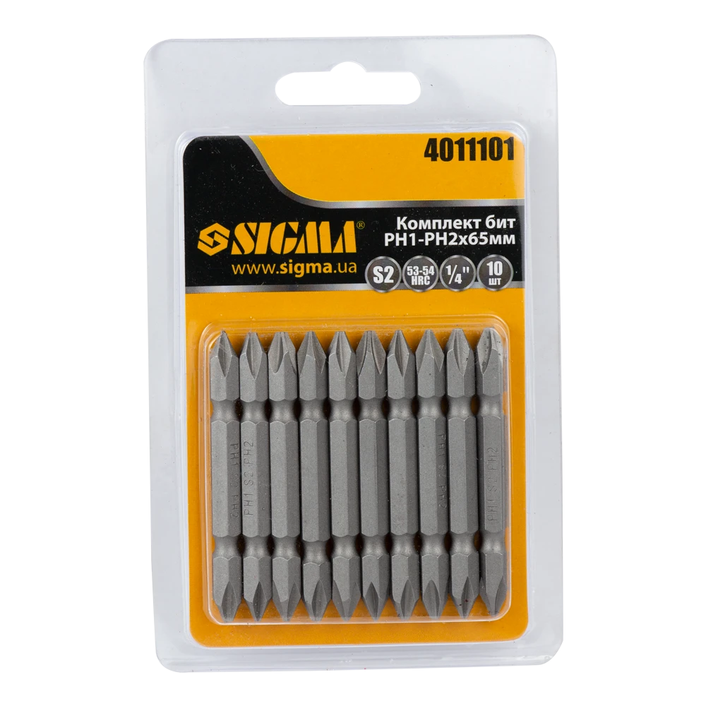 Набір біт двосторонніх PН1-PН2×65мм 1/4" 10шт S2 (блістер) SIGMA (4011101) призначений для використання в ручному, механізованому і електроінструменті.